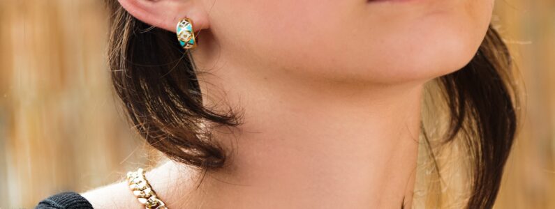 14 Ayar Sarı Altın Renkli Mineli Koleksiyon Küpe