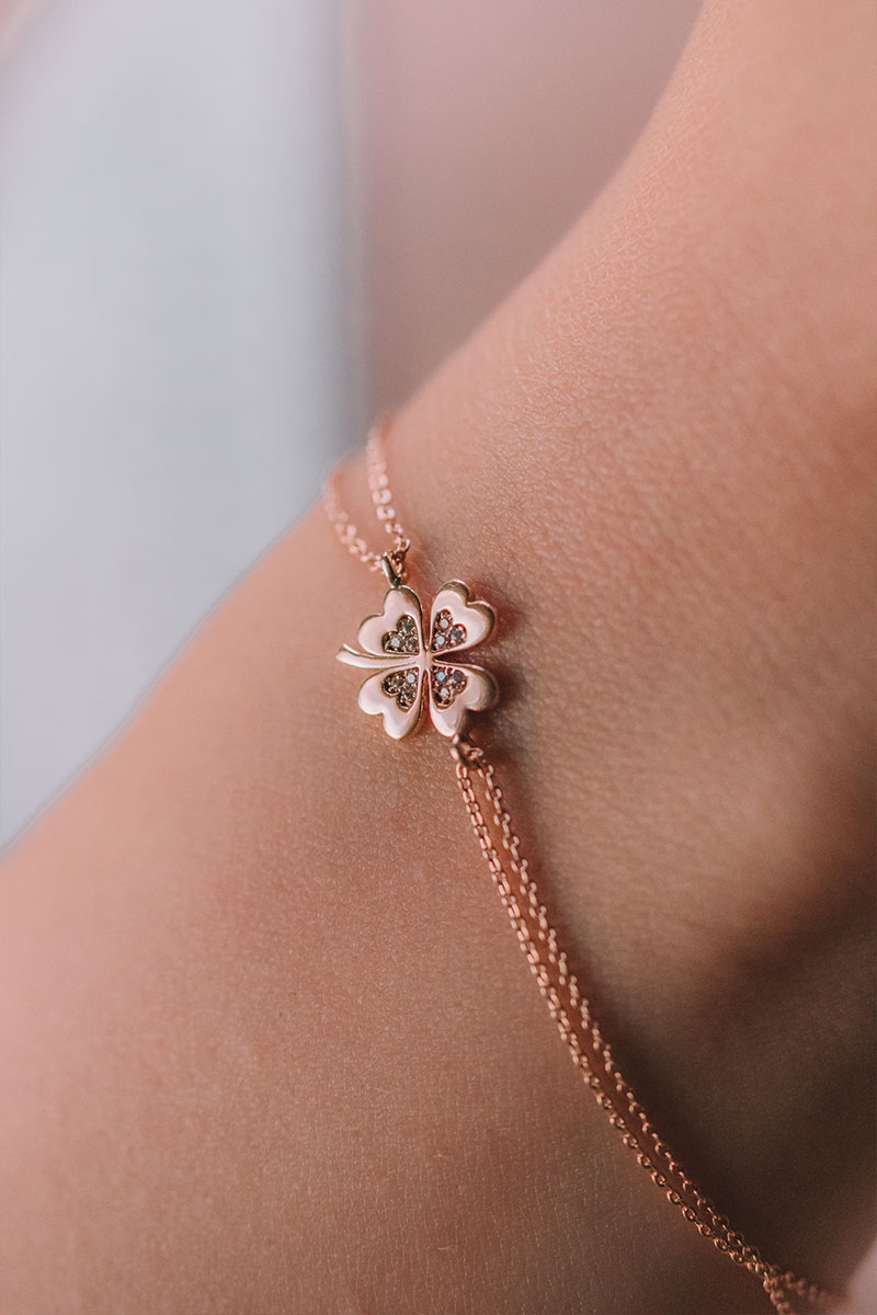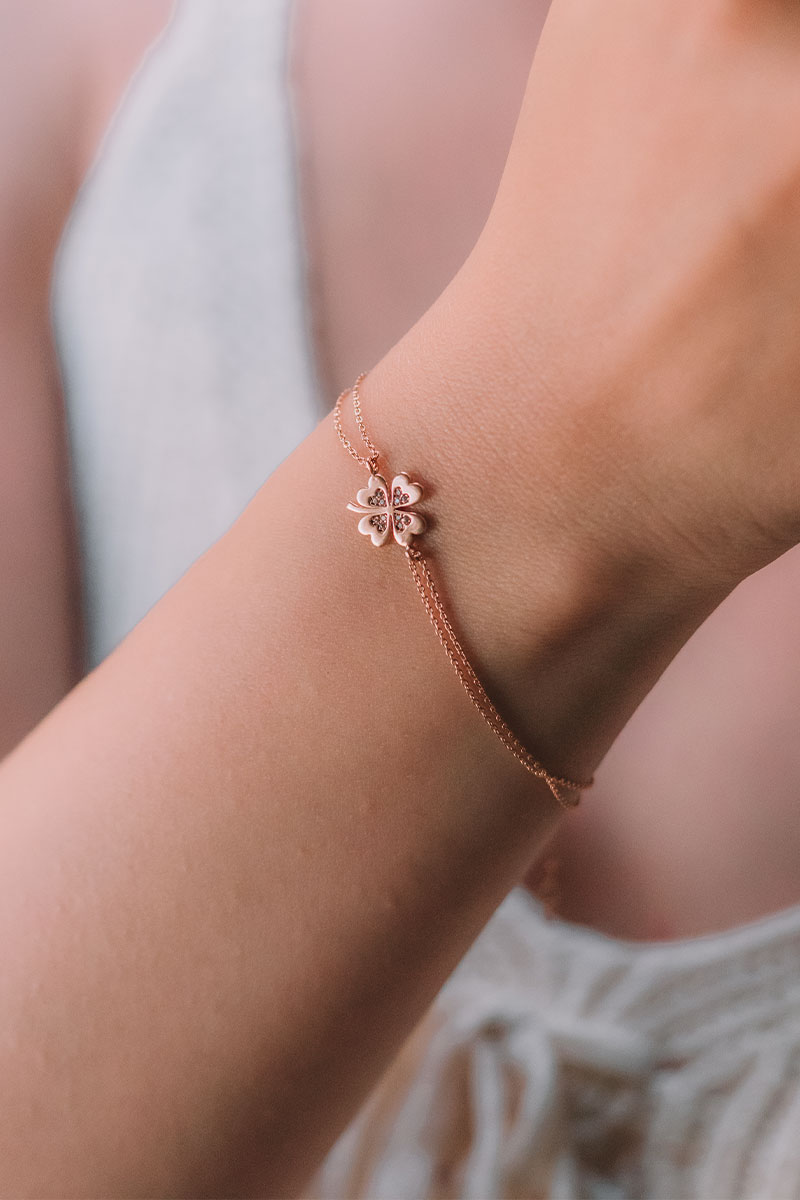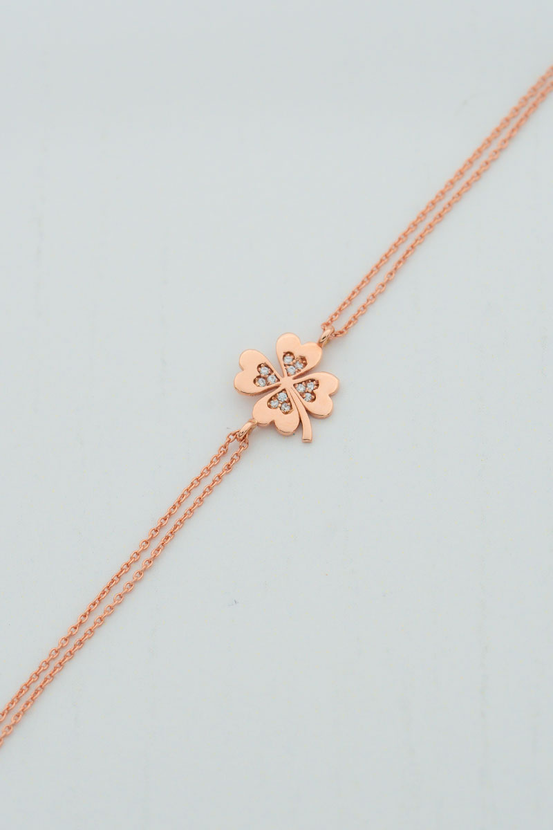 14 Ayar Altın Petite Rose Yonca Figürlü Taşlı Bileklik