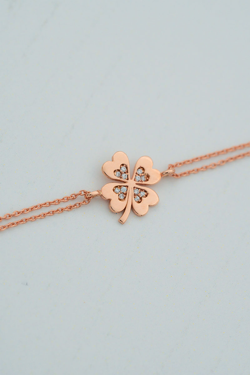 Petite Rose Kırmızı Altın Yonca Figürlü Taşlı Bileklik, (14 Ayar Altın) ürünümüz kendini mutlu etmek isteyen herkesi için özenle üretilmiş bir üründür. Kendisini şımartmak isteyen ve genç hisseden tüm kadınların tercih ettiği bir üründür.