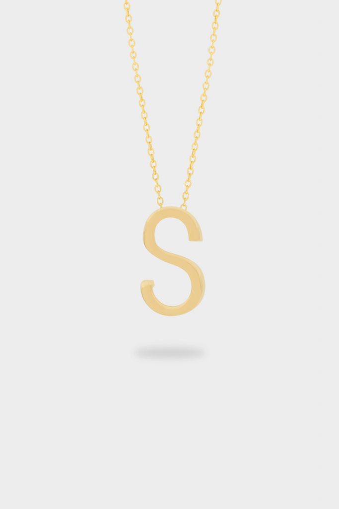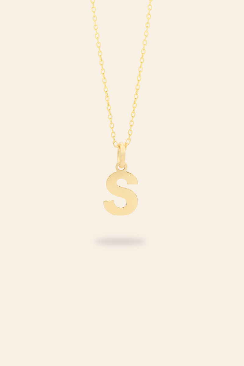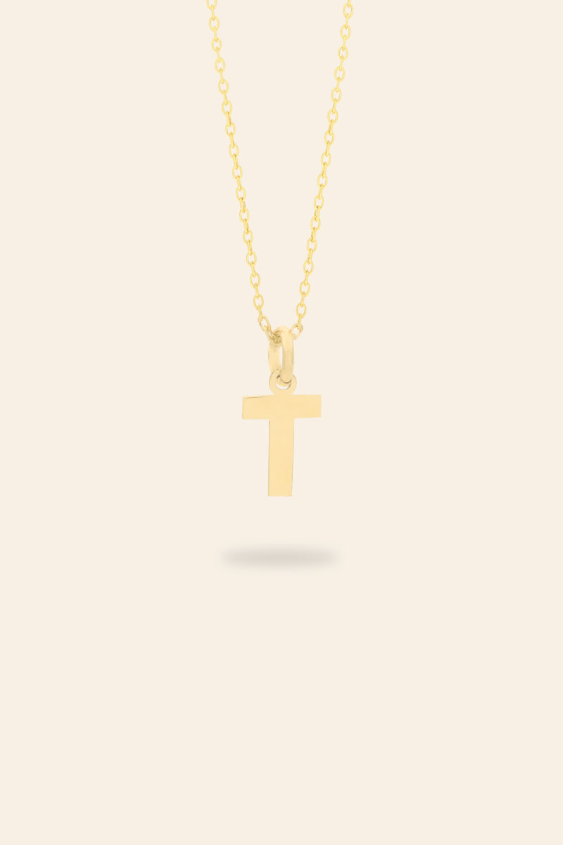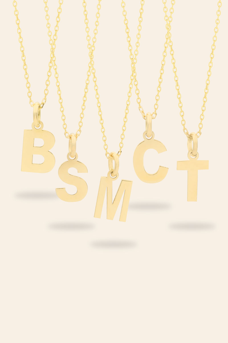14 Ayar Sarı Altın Zincirli Büyük Harf Kolye Ucu