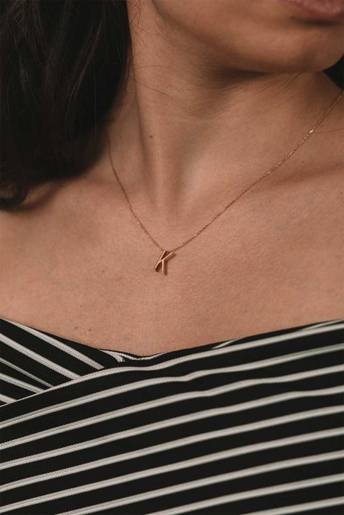 Minimalist çizgilerle kişisel anlam taşıyan özel bir kolye ucu.