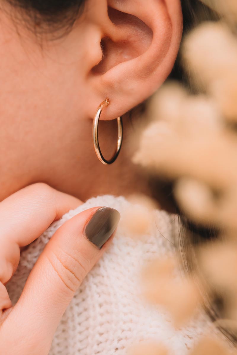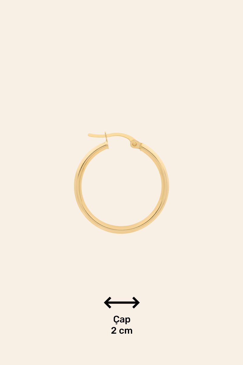 2 cm Altın Halka Küpe, (14 Ayar Altın) ürünümüz kendini mutlu etmek isteyen herkesi için özenle üretilmiş bir üründür. Kendisini şımartmak isteyen ve genç hisseden tüm kadınların tercih ettiği bir üründür.