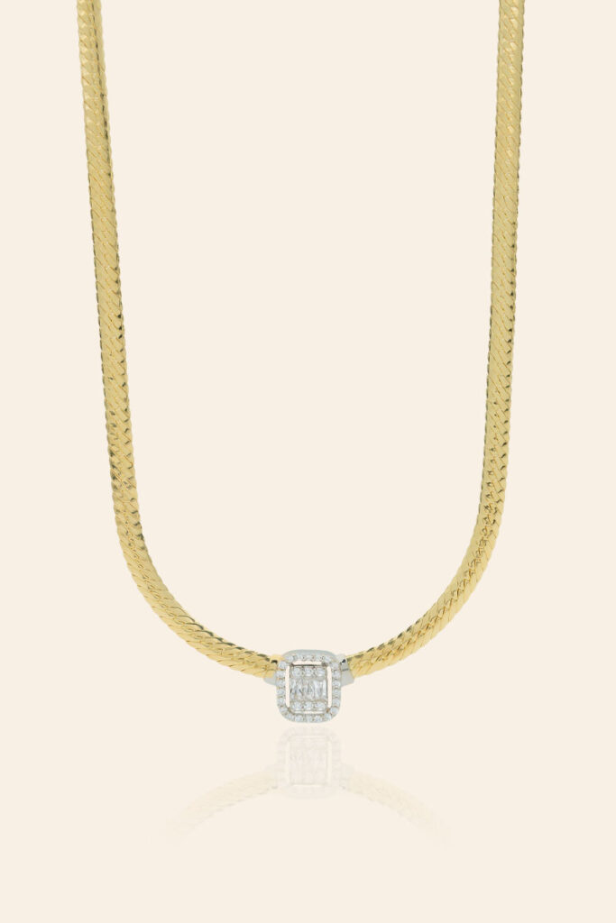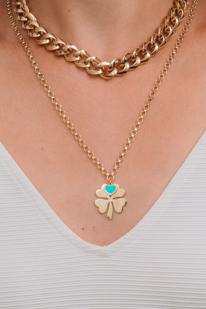 Farklı sembollerle stilini ifade etmeyi sevenler için tasarlanan bu kolye, modern altın takılar arasında özgün bir alternatif sunar.