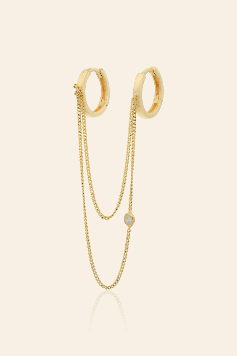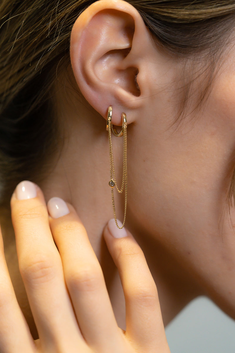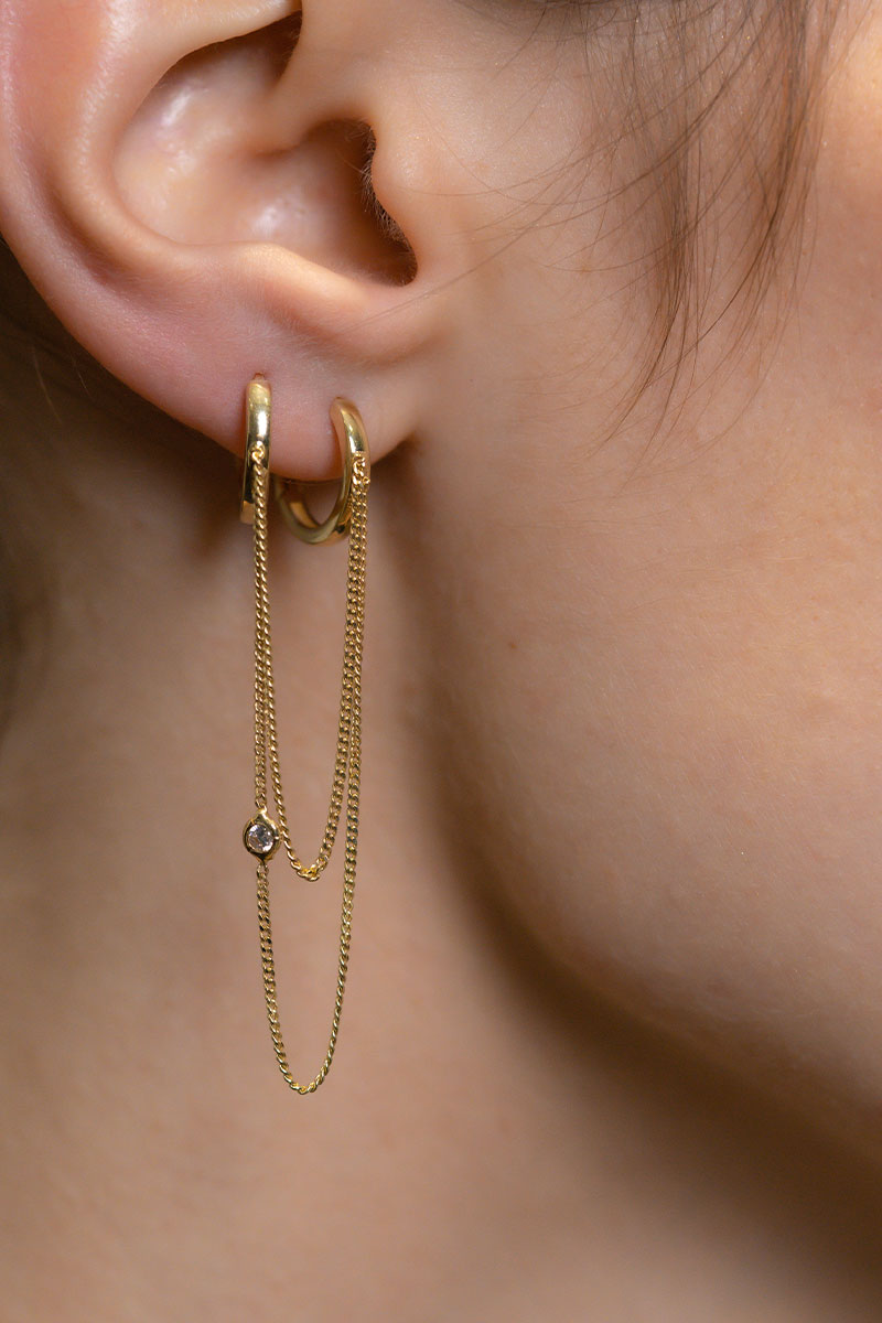14 Ayar Sarı Altın Çift Zincirli Halka Tek Küpe