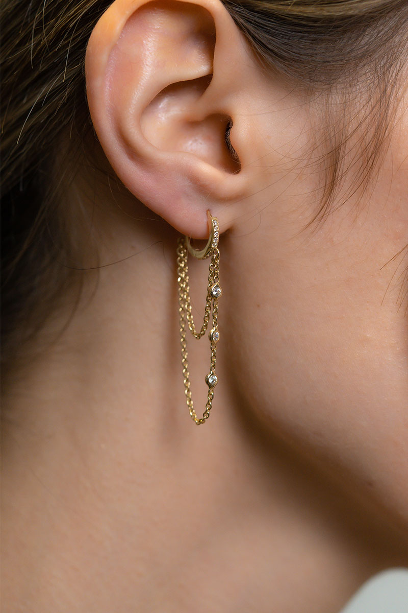 14 Ayar Sarı Altın Çift Zincirli Küpe