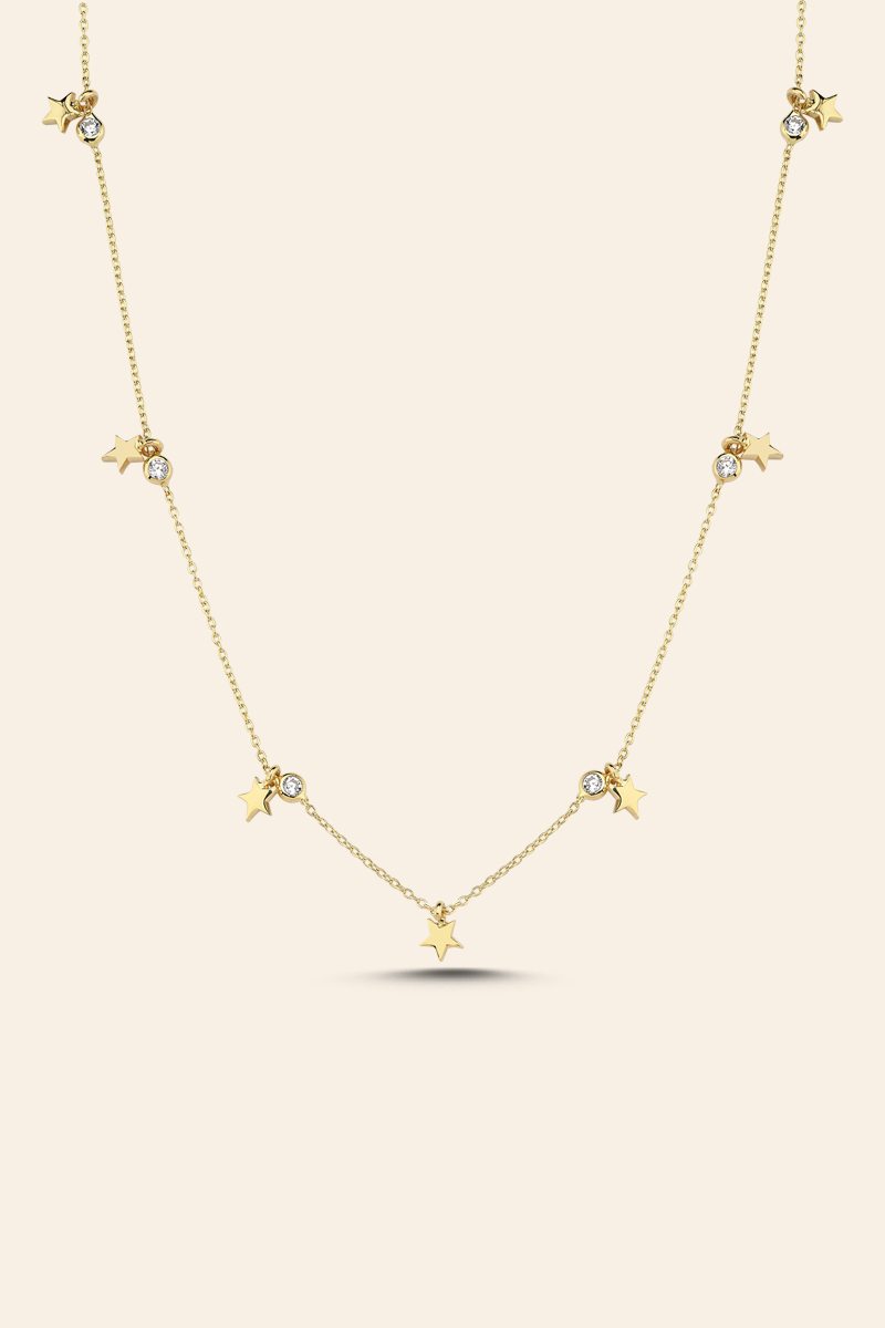 14 Ayar Sarı Altın Çoklu Yıldız Figürlü Kolye ile Zerafetin Işıltısı