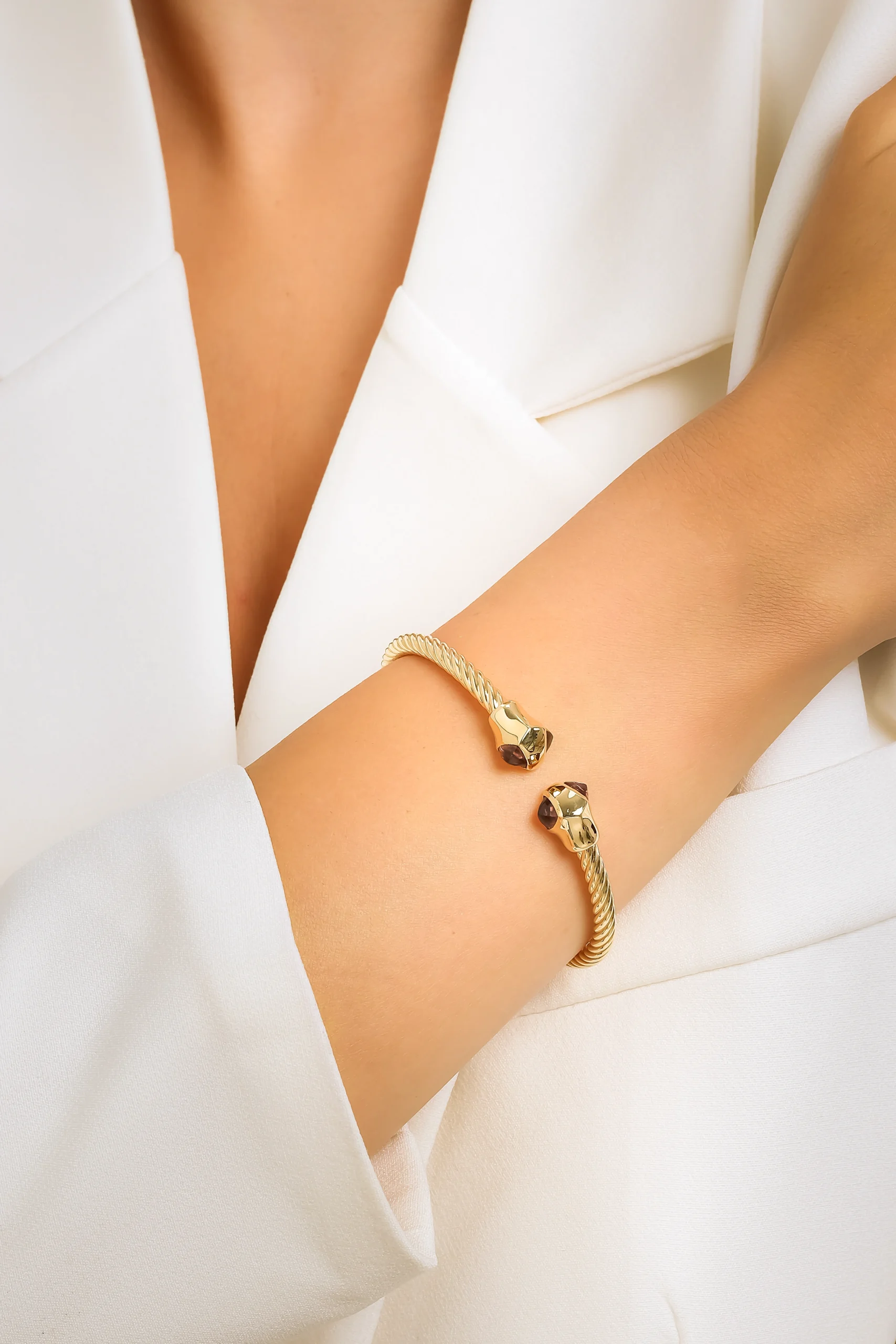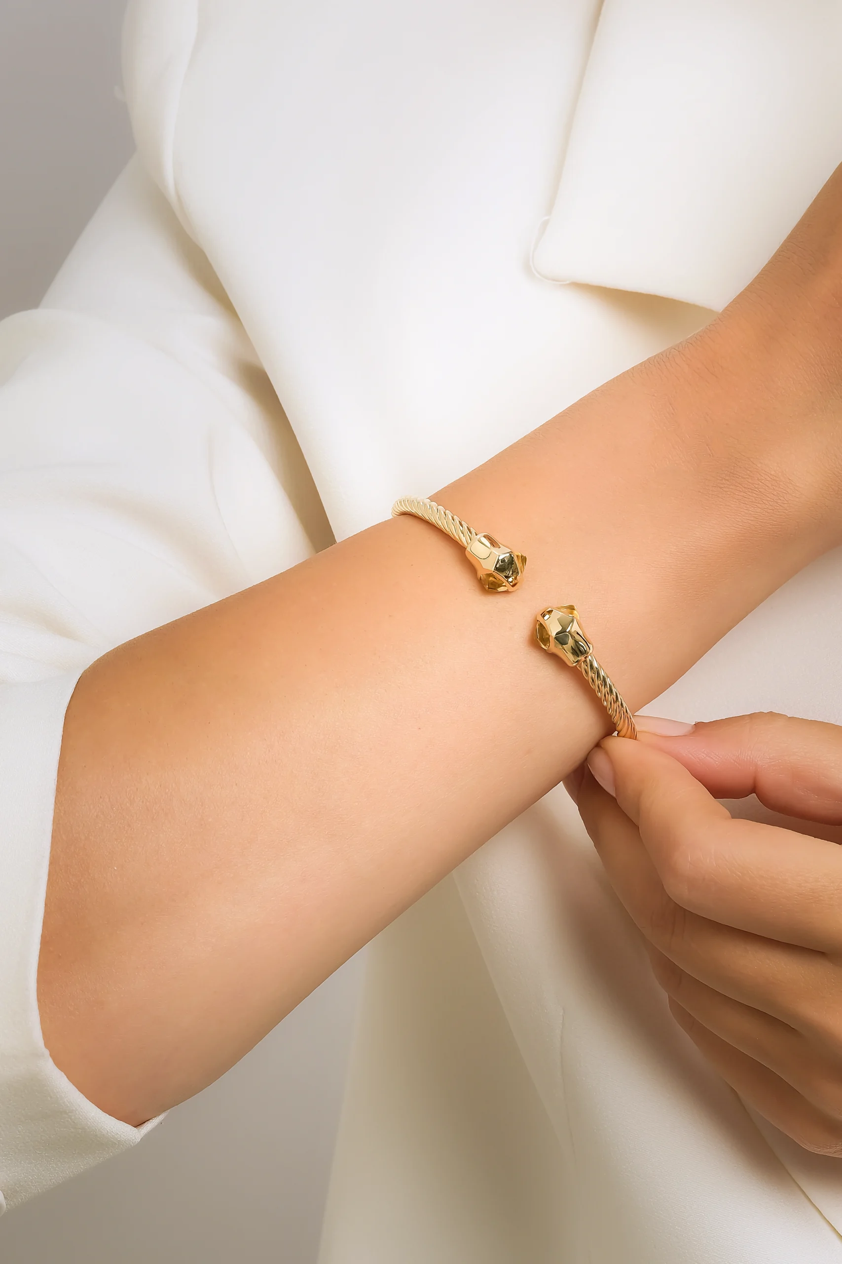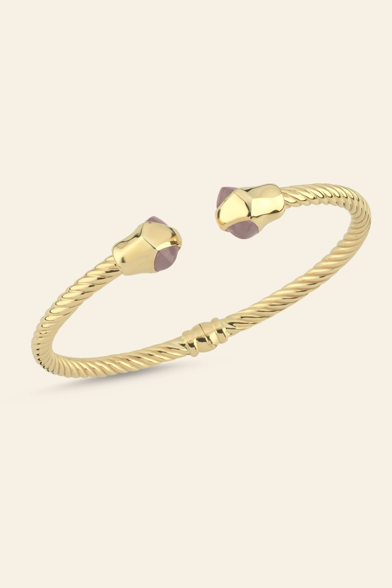 14 ayar sarı altının sıcak tonları, bileziğe hem lüks hem de zamansız bir dokunuş kazandırır. Açık uçlu yapısı bileğe kolayca takılabilir formdadır ve konforlu bir kullanım sağlar. Günlük kombinlerde sade şıklığın bir parçası olarak ya da özel günlerde sofistike bir vurgu unsuru olarak tercih edilebilir.
