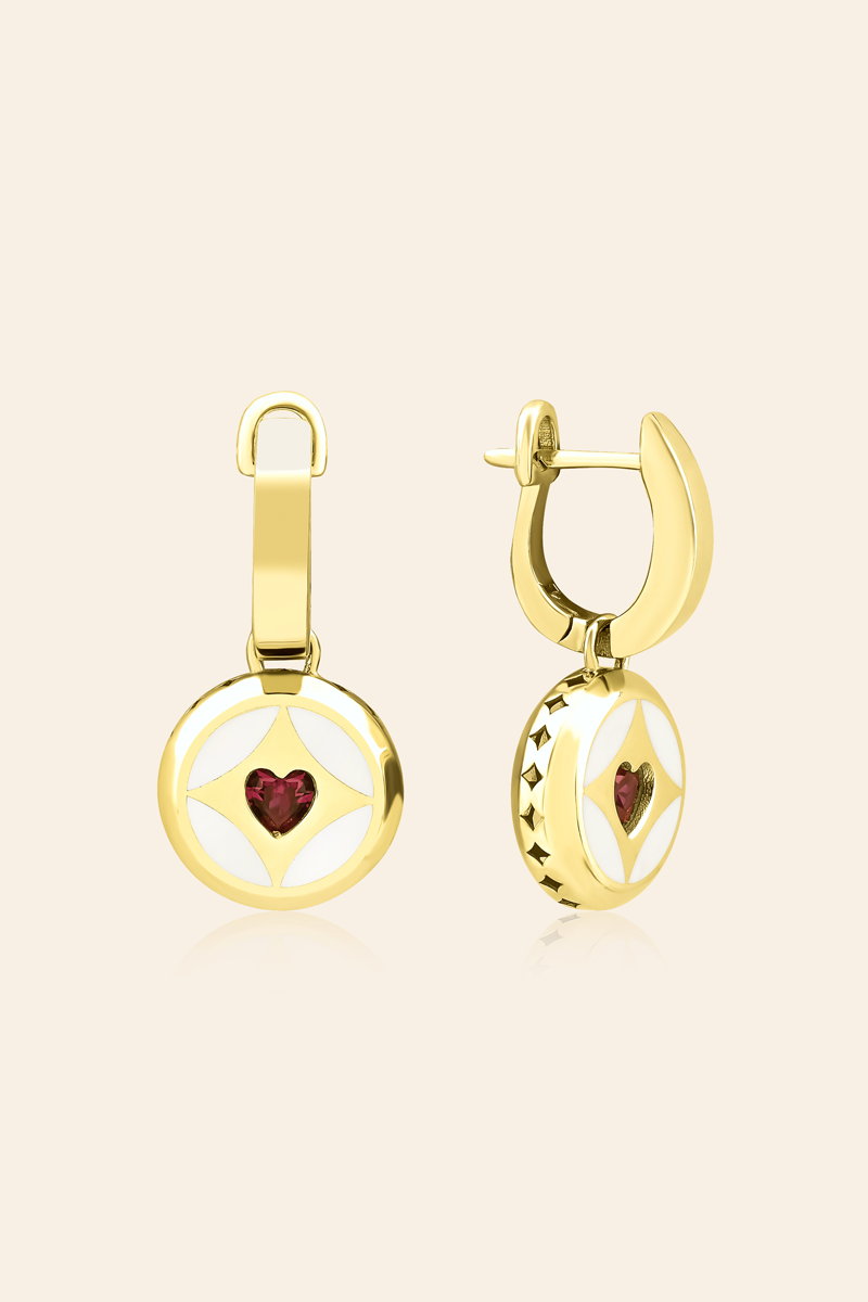 Anlam yüklü motifi ve dengeli formuyla dikkat çeken bu küpe, hem klasik hem de çağdaş tarzlara uyum sağlar.