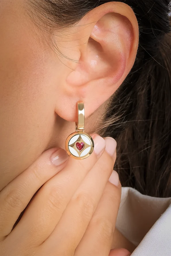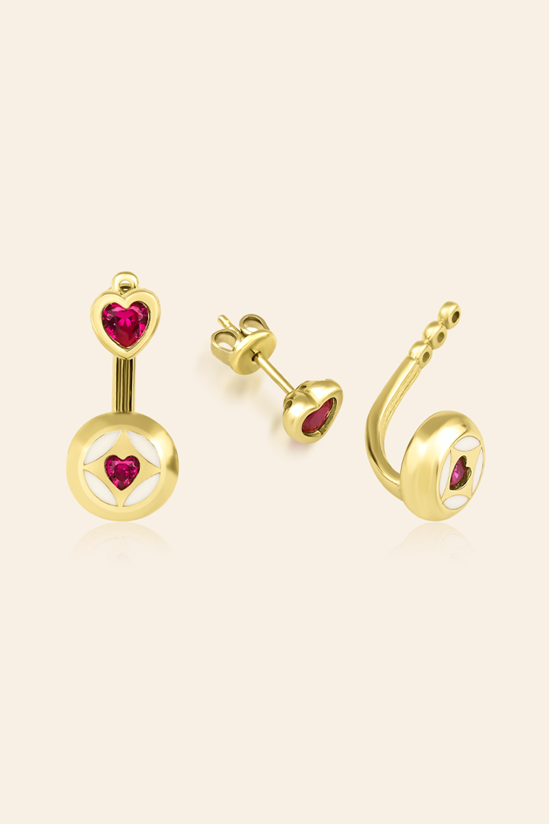 Kalp motifinin sembolik gücünü modern bir formda sunan bu küpe, stiline anlam katmak isteyenler için ideal bir seçimdir.