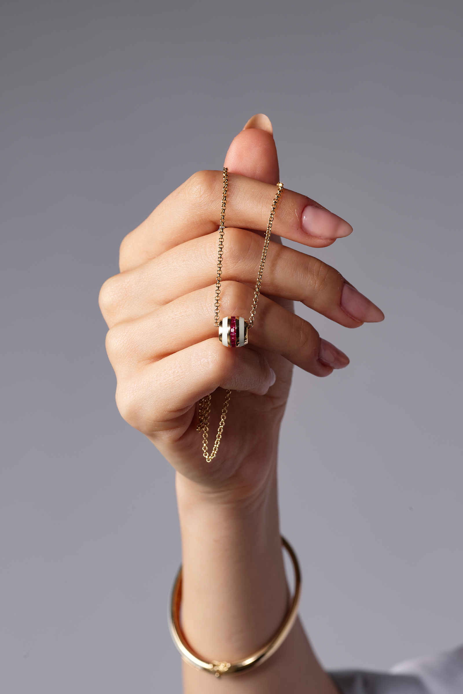 Minimalist tasarımıyla güçlü bir stil yaratmak isteyen kadınların gözdesi olacak 14 Ayar Sarı Altın Kırmızı Taşlı Mineli Koleksiyon Kolye, her anınıza zarafet katar.