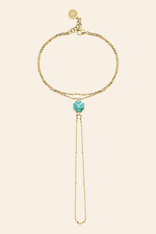 Bileğinizi çevreleyen ince sarı altın zincir, tasarımın en göze çarpan unsurlarından biridir. Halkalı kilit sistemi ile kolayca takılıp çıkarılabilen bu model, konforlu bir kullanım sunar. İnce işçiliğiyle şekillendirilen zincir, el üzerinde dengeli bir şekilde durur ve şık bir görünüm oluşturur.