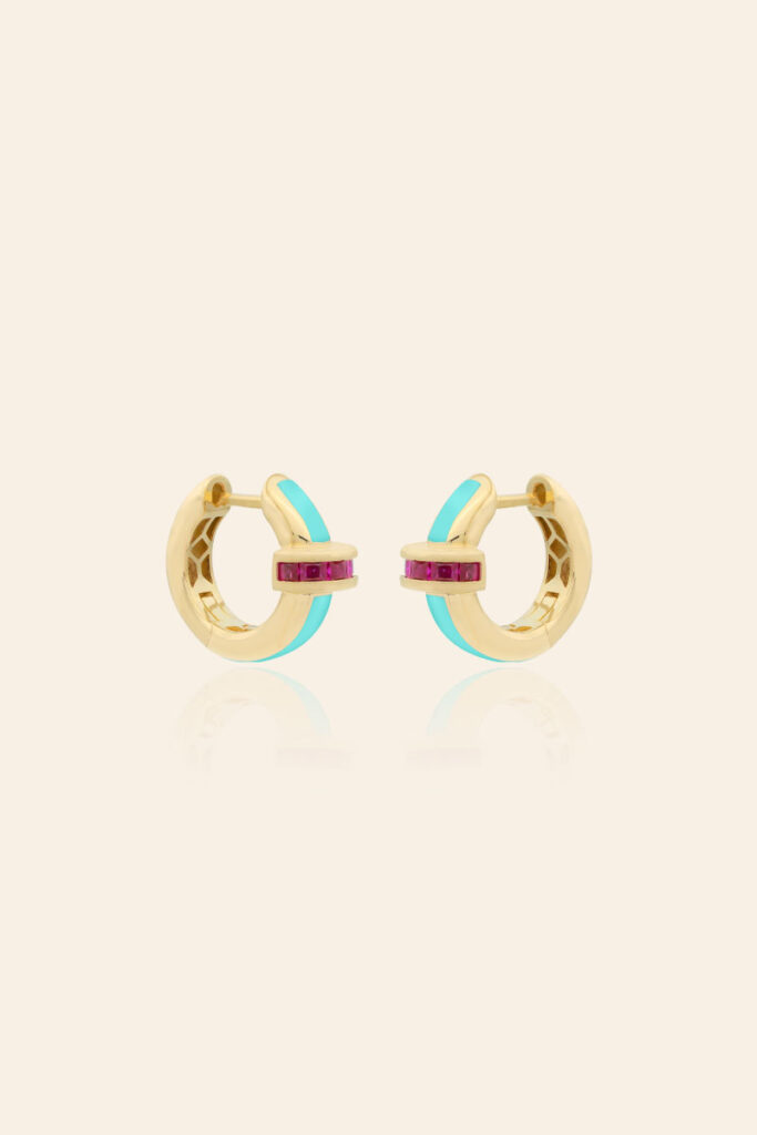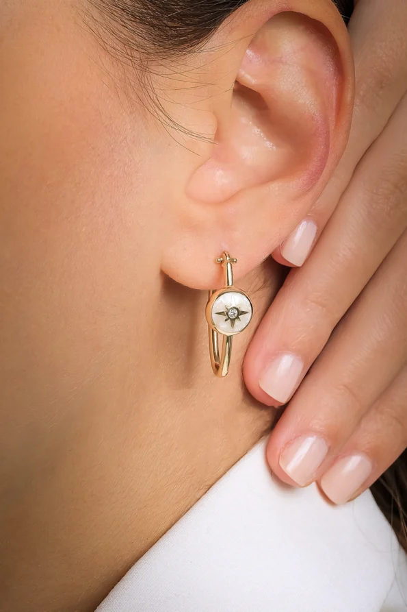 Lotus çiçeğinin sade ama güçlü duruşundan ilham alan bu eşsiz tasarım, günlük kombinlerden özel davetlere kadar her ortamda stilinizi göz alıcı bir şekilde tamamlar. Sarı altının sıcak tonları ile beyaz minenin zarif dokusu bir araya gelerek küpeye modern ve zamansız bir görünüm kazandırır. Merkezde yer alan kırmızı taş, tasarıma sofistike bir vurgu yaparken parlak yüzey ve dengeli form, parçanın hem tek başına hem de farklı aksesuarlarla kolayca kombinlenebilmesini sağlar. Altın küpe modelleri arasında dikkat çeken bu özel tasarım, modern çizgisiyle her zevke hitap eder.