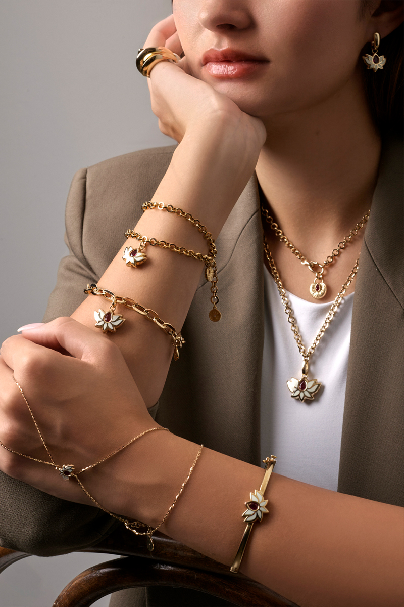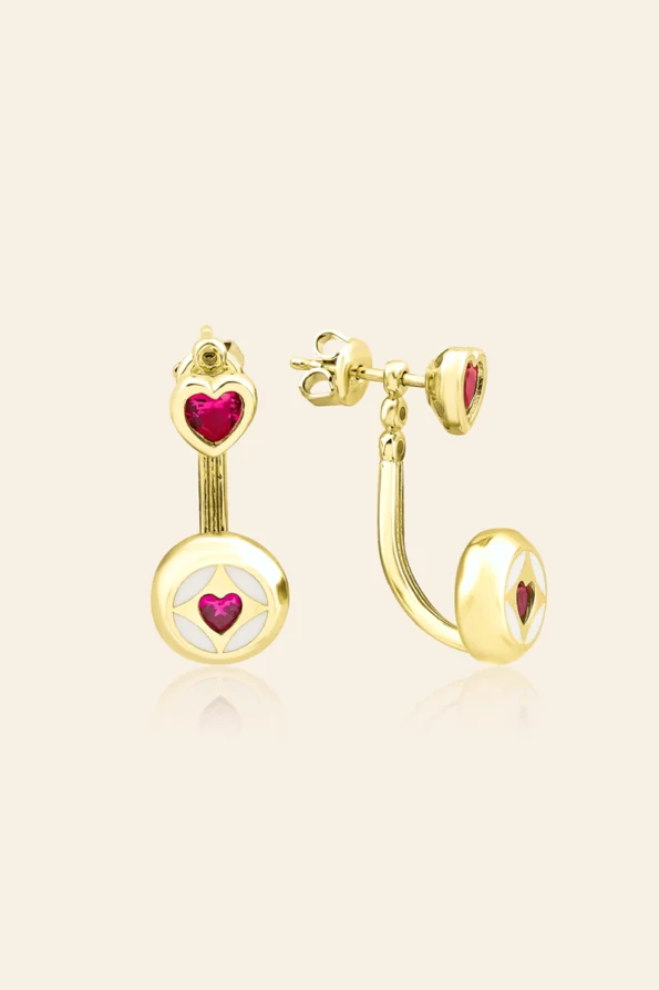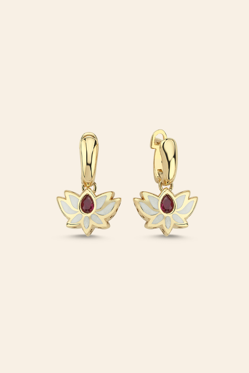 Lotus çiçeğinin sade ama güçlü duruşundan ilham alan bu eşsiz tasarım, günlük kombinlerden özel davetlere kadar her ortamda stilinizi göz alıcı bir şekilde tamamlar. Sarı altının sıcak tonları ile beyaz minenin zarif dokusu bir araya gelerek küpeye modern ve zamansız bir görünüm kazandırır. Merkezde yer alan kırmızı taş, tasarıma sofistike bir vurgu yaparken parlak yüzey ve dengeli form, parçanın hem tek başına hem de farklı aksesuarlarla kolayca kombinlenebilmesini sağlar. Altın küpe modelleri arasında dikkat çeken bu özel tasarım, modern çizgisiyle her zevke hitap eder.