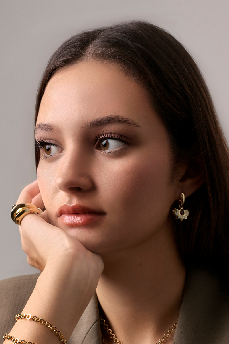 Küpenin ergonomik yapısı, uzun süreli kullanımda bile rahatlık sunar. 14 Ayar Altın Küpe çeşitleri arasında öne çıkan Lotus Koleksiyon modeli, lotus formundaki dikkat çekici tasarımı ve ince mine işçiliğiyle hem klasik hem de modern giyim tarzlarına mükemmel uyum sağlar. Ustalıkla hazırlanan detaylar, küpenin estetik bütünlüğünü tamamlar ve sofistike bir görünüm kazandırır. Altın mineli küpe modelleri arasında yer alan bu parça, zamansız şıklığı ve zarif duruşu ile her takışta stilinize özel bir dokunuş ekler.