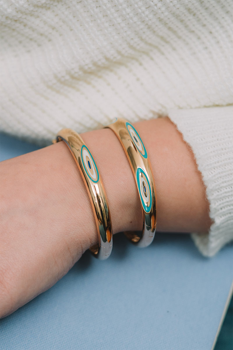 Fortuna Altın Göz Figürlü Kelepçe Bilezik, yetenekli ustalarımızın elinde şekillenerek sizler için özenle hazırlanmaktadır.