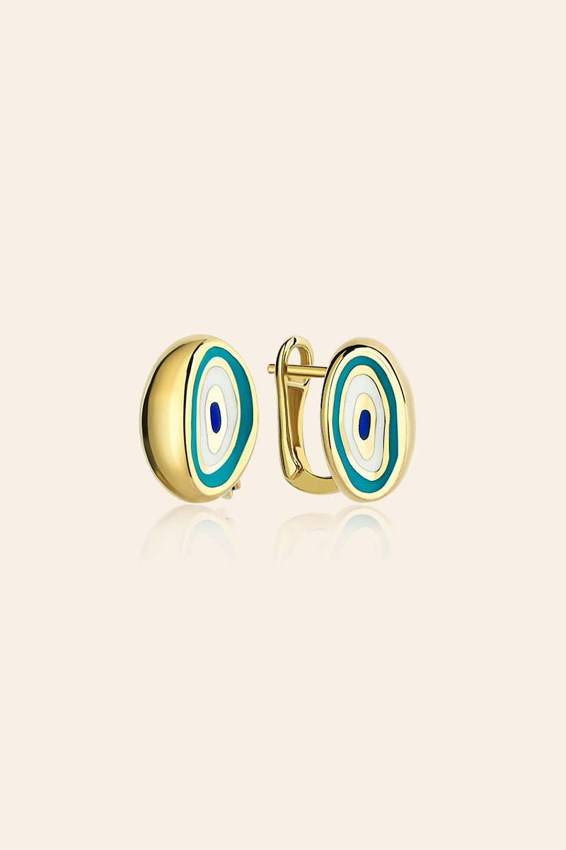 14 Ayar Sarı Altın Mineli Nazar Boncuğu Figürlü Küpe