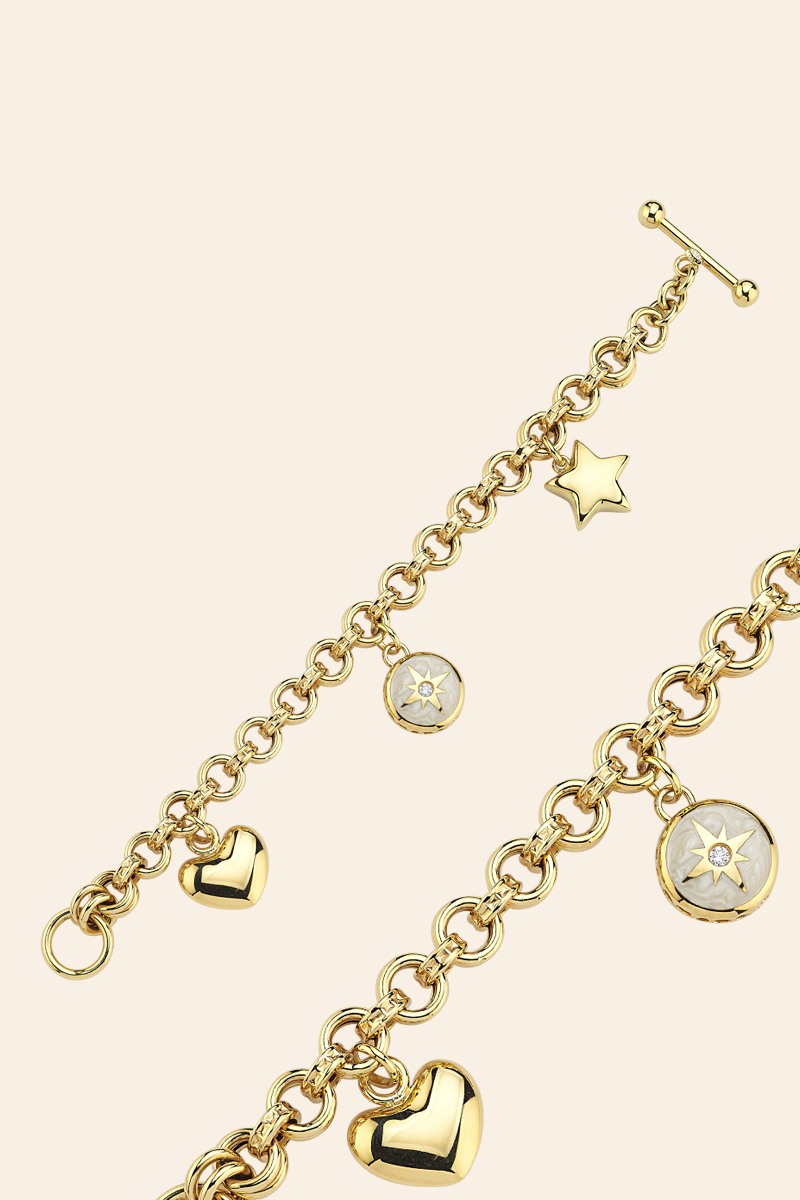 14 Ayar Sarı Altın Mineli Polaris Charm Bileklik ile Zarafet