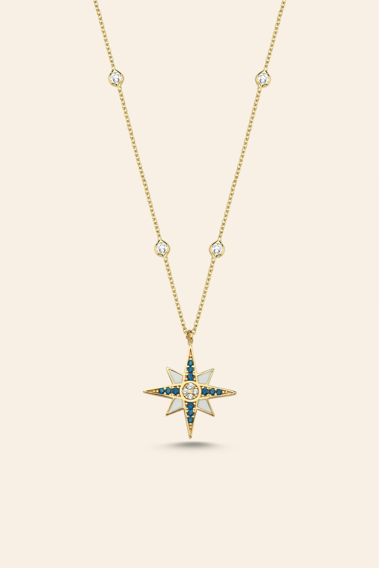 14 Ayar Sarı Altın Mineli Taşlı Kutup Yıldızı Kolye ile Işıltının Yönünü Belirleyin