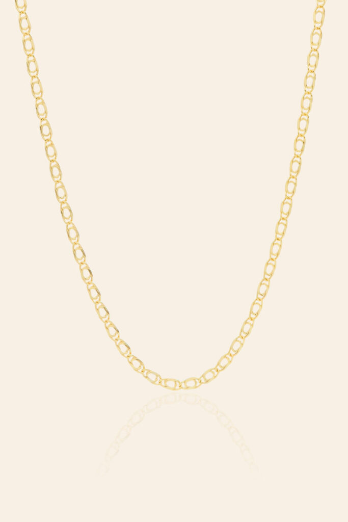 Zincir kısa formdadır ve sade bir duruş sunar.