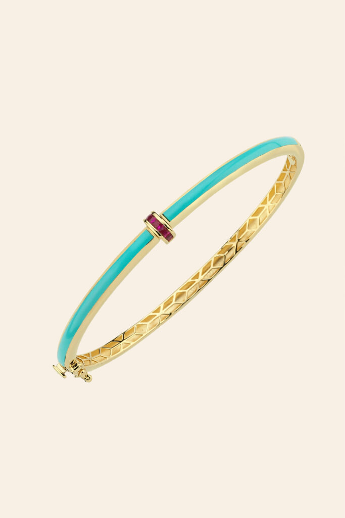 Bileziğin sedefli mine kaplı yüzeyi ve dengeli formu kullanımı rahat ve konforlu hale getirir. 14 ayar altın bileklik kategorisindeki bu özel model altının doğal parlaklığını ön plana çıkararak kombininize uyum sağlar. Tasarımındaki ince dokunuşlar bileziğin hem klasik hem de modern stillerle kolayca eşleşmesini sağlar. Farklı zevklere hitap eden Olivia Koleksiyonu, zarif formlu modellerin yanı sıra altın mineli bilezik tasarımlarıyla da dikkat çeker.