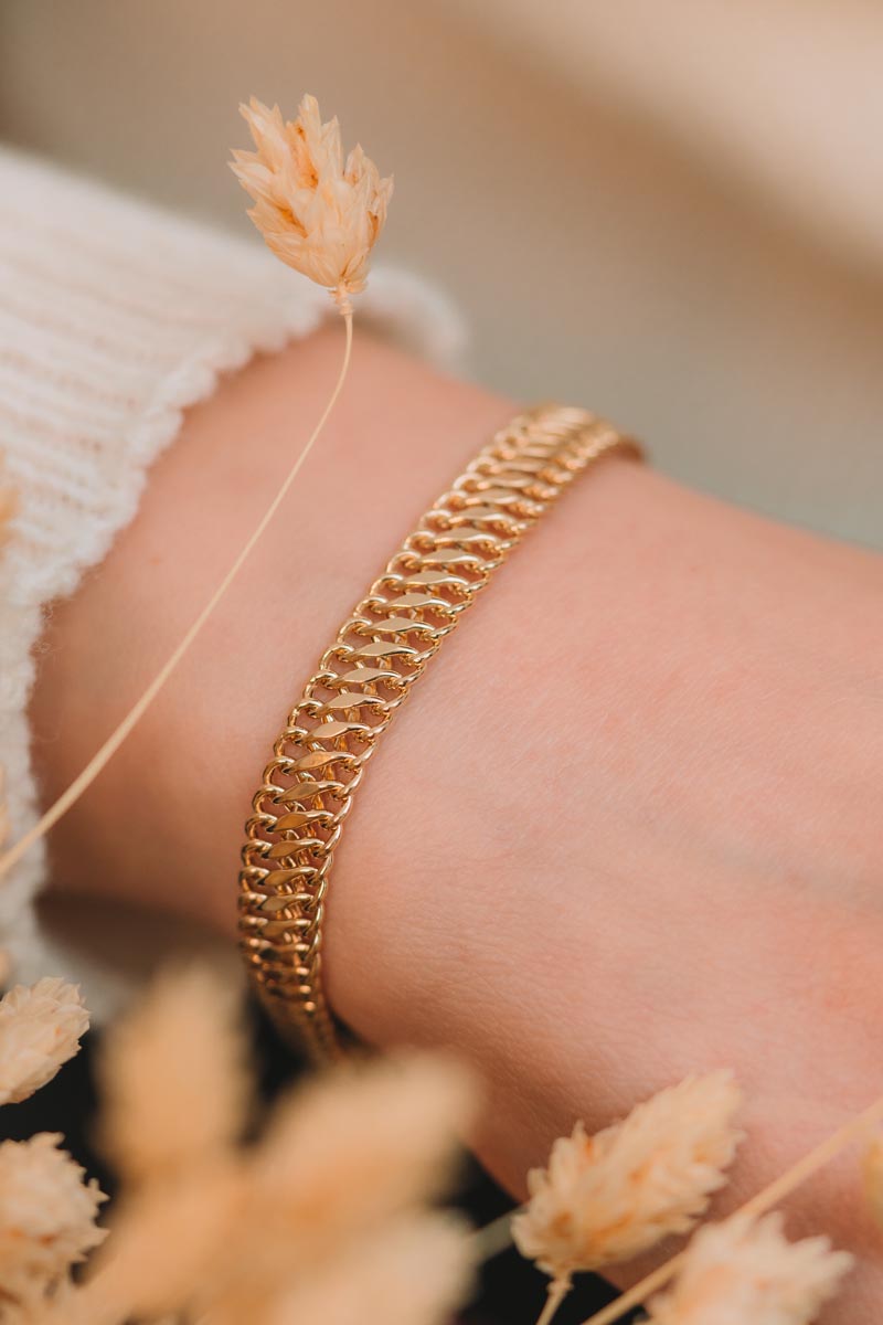 Altın Örgü Zincir Bileklik, yetenekli ustalarımızın elinde şekillenerek sizler için özenle hazırlanmaktadır.