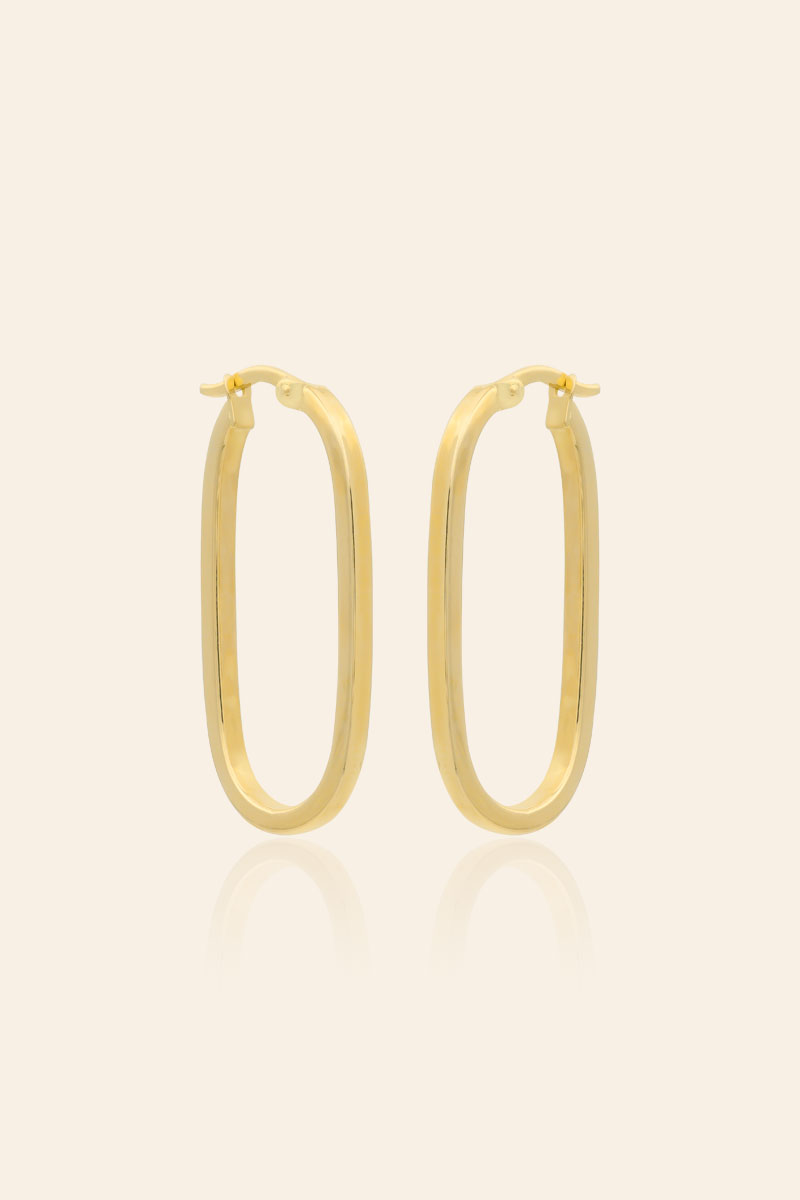 14 Ayar Sarı Altın Oval Tasarım Halka Küpe