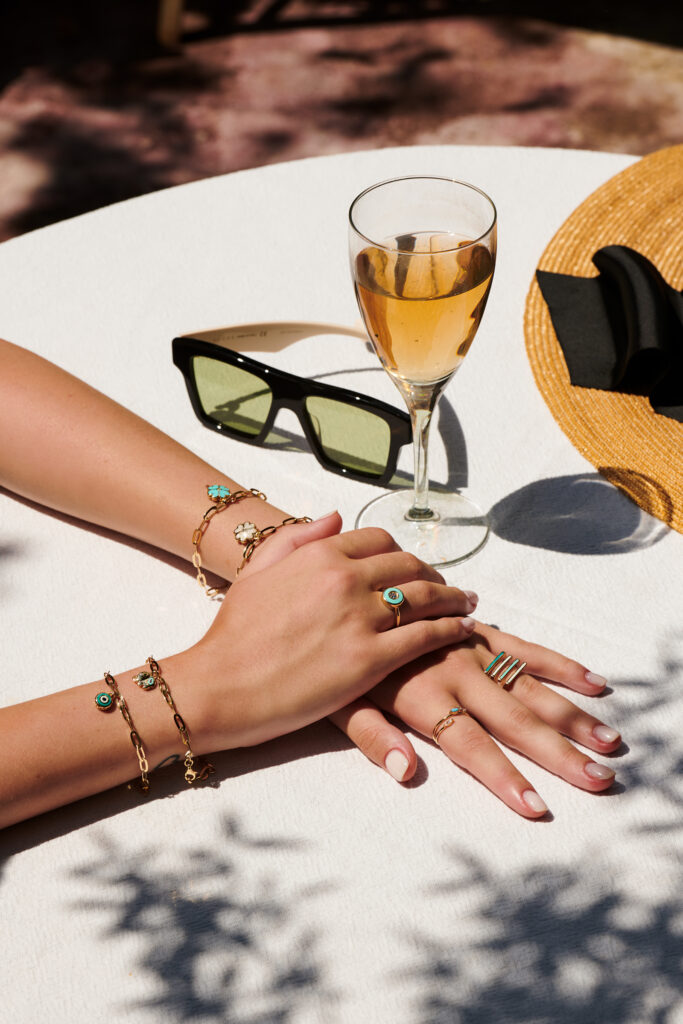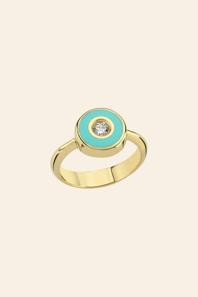 14 Ayar Sarı Altın Pastel Renk Mineli Koleksiyon Yüzük ile Modern Şıklık