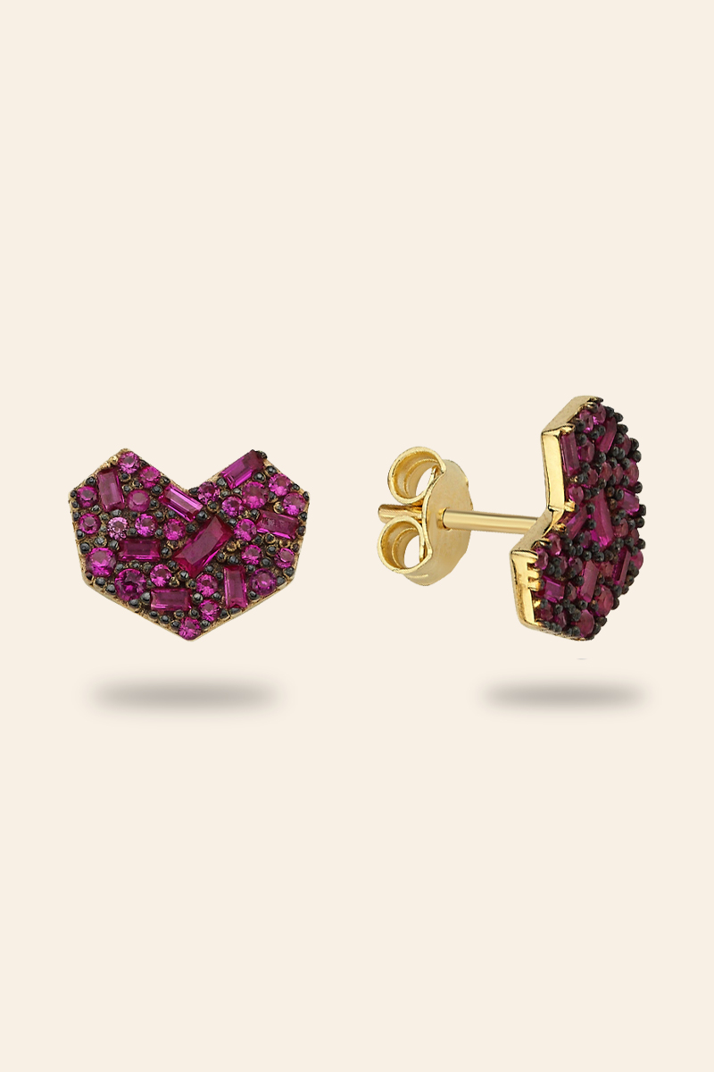 Güçlü renkleri ve sembolik kalp formuyla bu küpe, stiline duygusal derinlik ve iddialı bir ışıltı katmak isteyenler için özgün bir seçimdir.