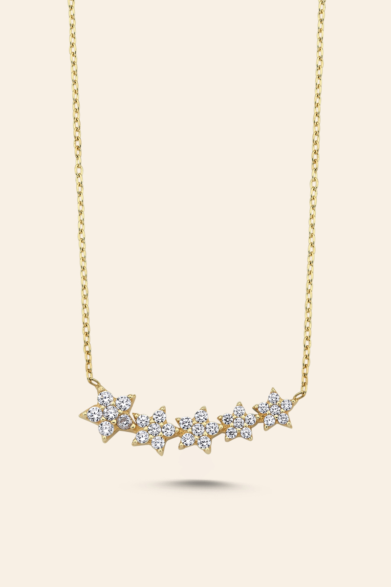 14 Ayar Sarı Altın Taşlı Beş Yıldız Tasarım Kolye