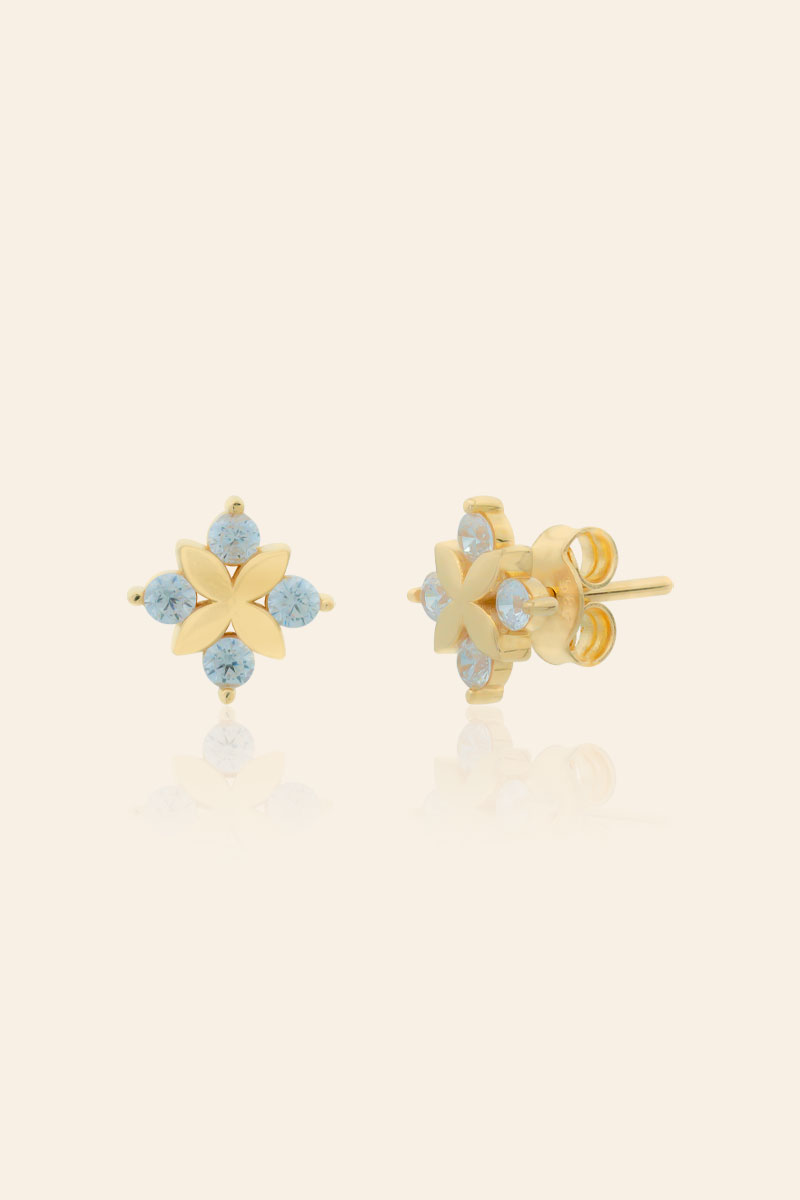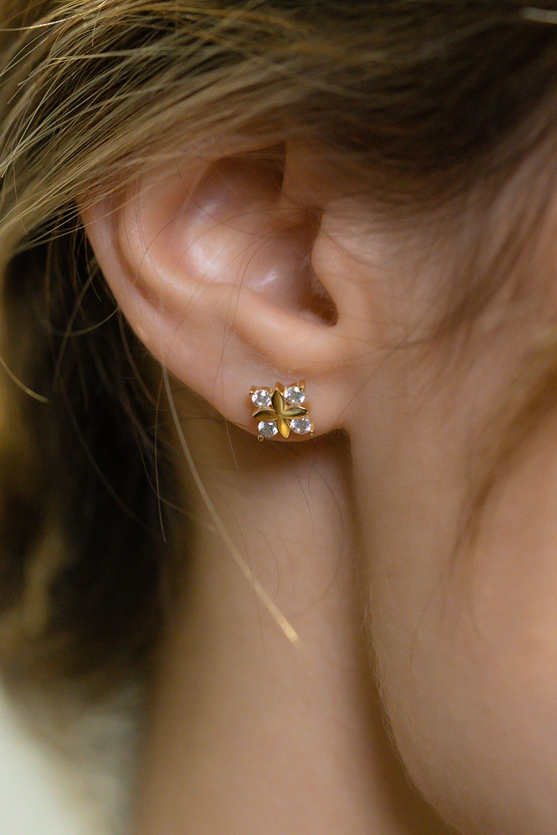 14 Ayar Sarı Altın Taşlı Çiçek Figürlü Küpe