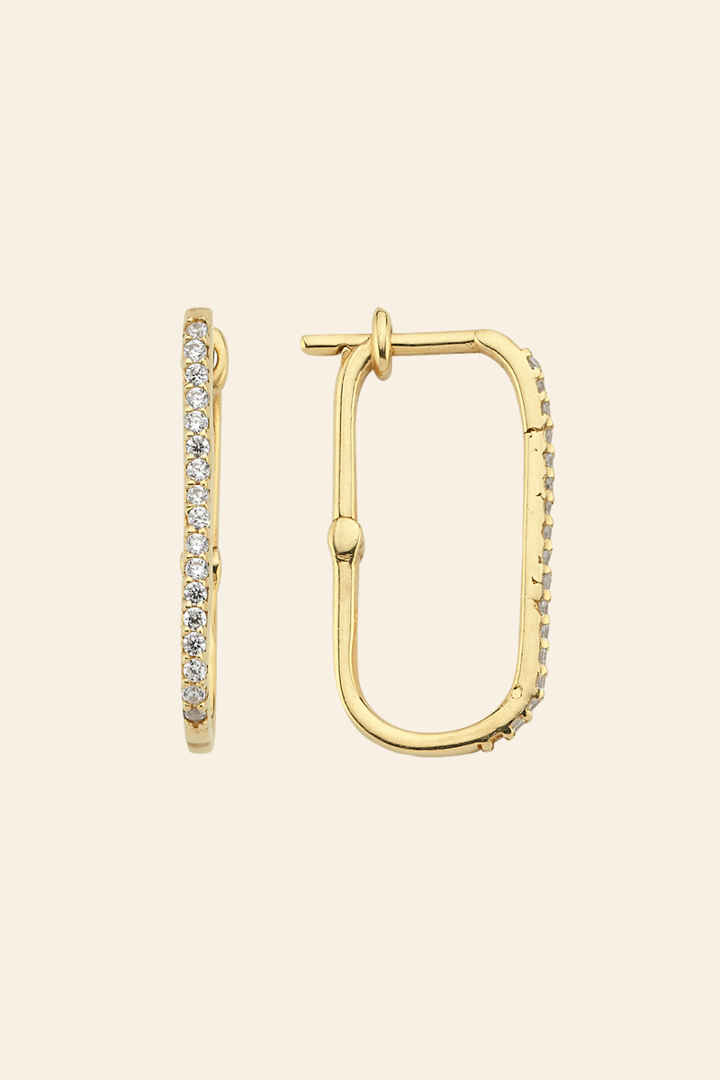 14 Ayar Sarı Altın Taşlı Dikdörtgen Halka Küpe ile Modern Şıklığı Yakalayın