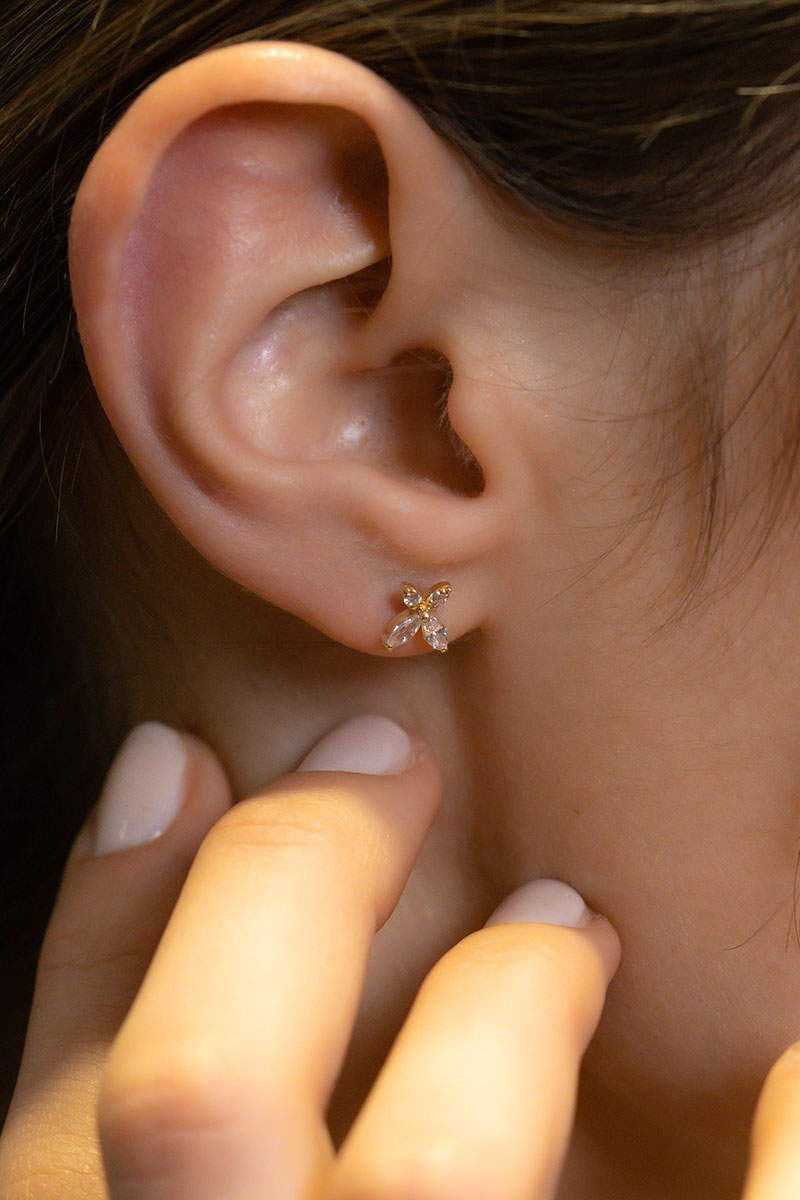 14 Ayar Sarı Altın Taşlı Kelebek Tasarım Küpe