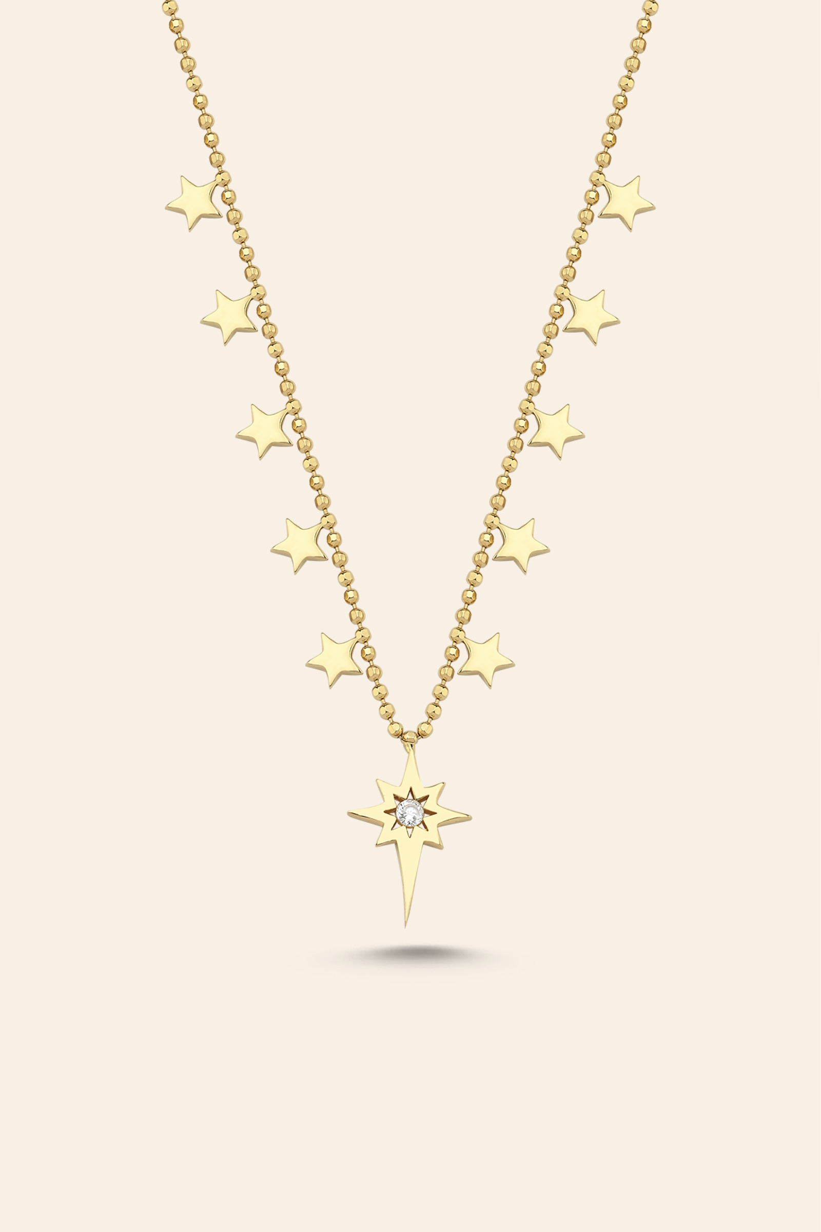 14 Ayar Sarı Altın Taşlı Kutup Yıldızı Figürlü Kolye ile Işıltını Yansıt