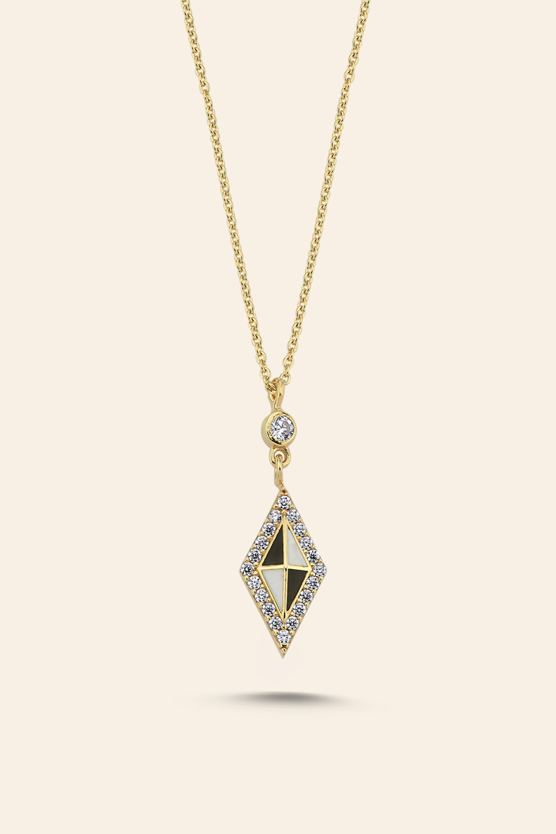 14 Ayar Sarı Altın Taşlı Mineli Geometrik Tasarım Kolye ile Modern Şıklığı Yakalayın