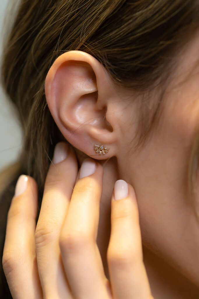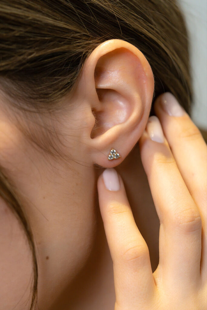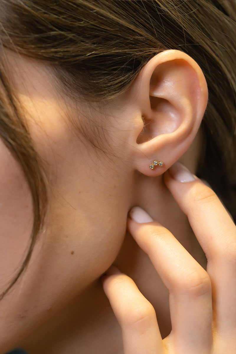 14 Ayar Sarı Altın Taşlı Minimal Küpe