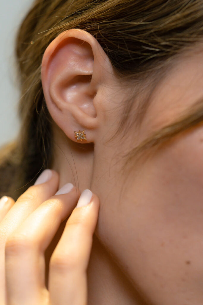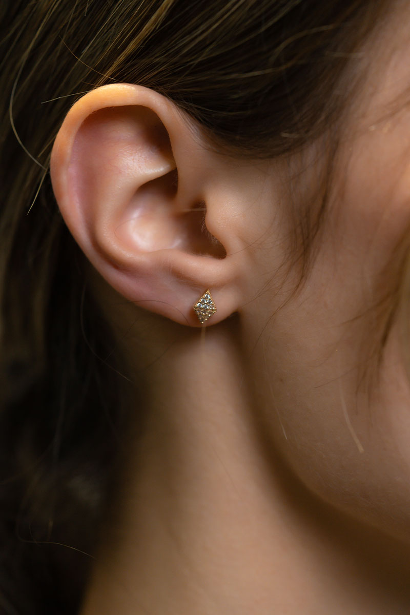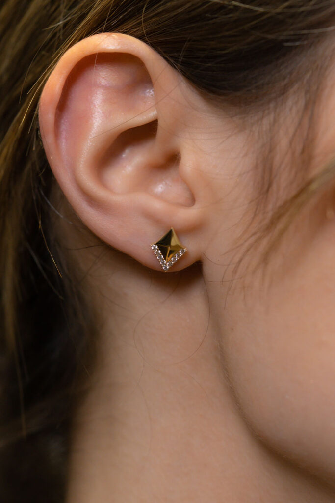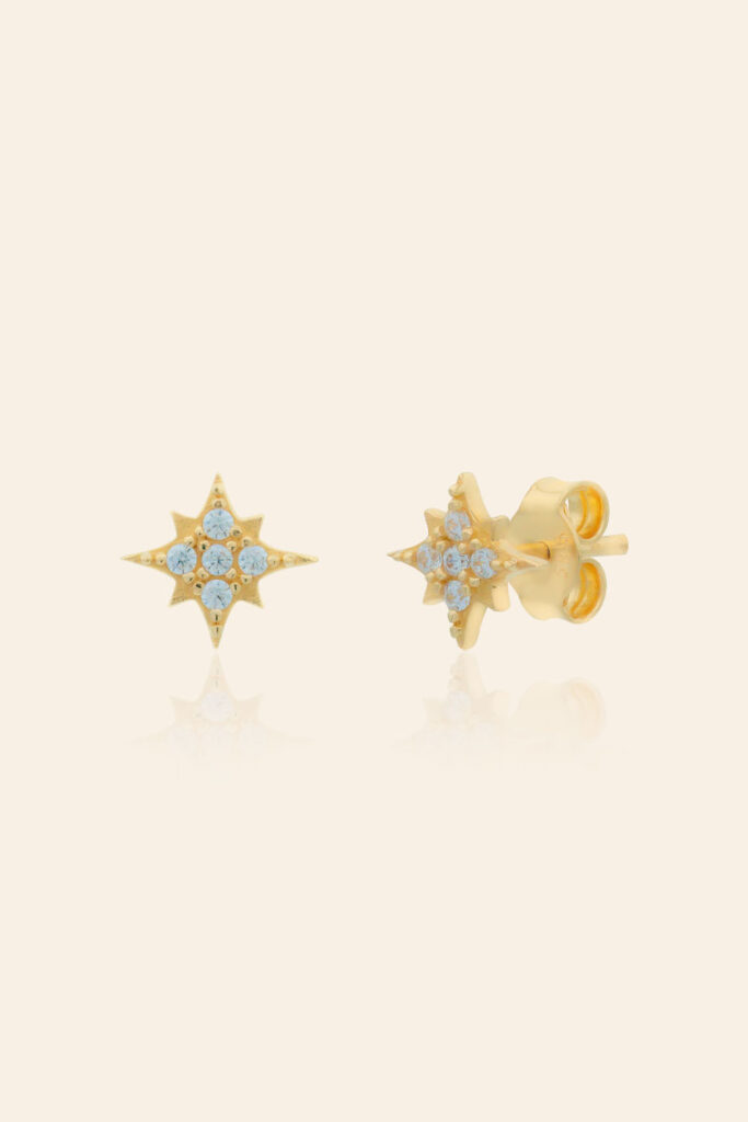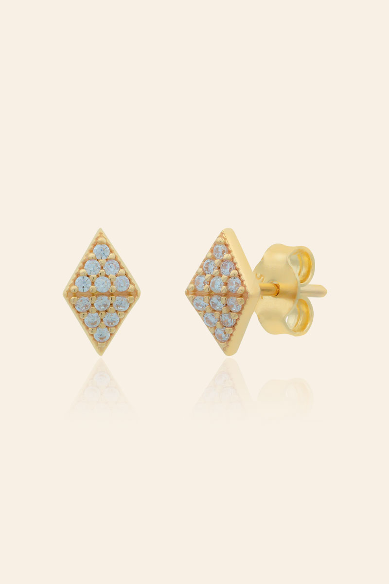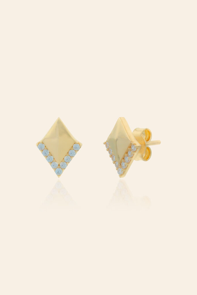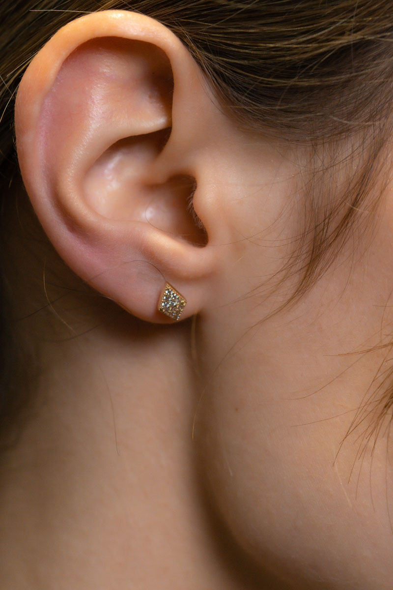 14 Ayar Sarı Altın Taşlı Minimal Küpe