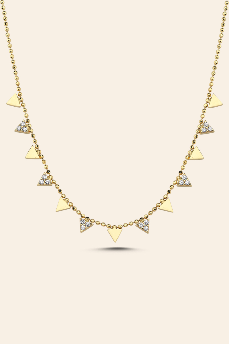 14 Ayar Sarı Altın Taşlı Üçgen Figürlü Kolye
