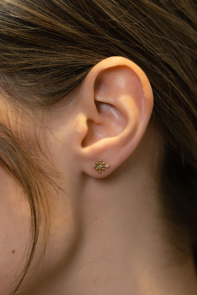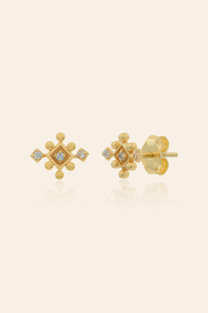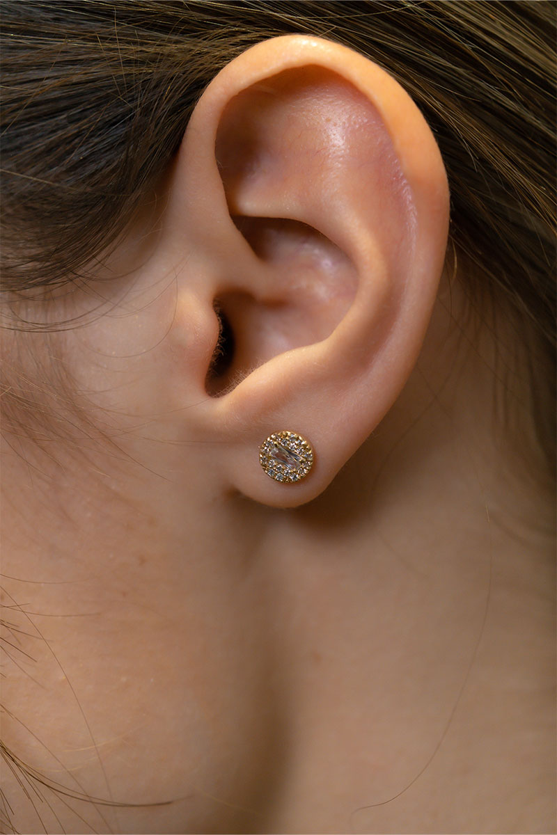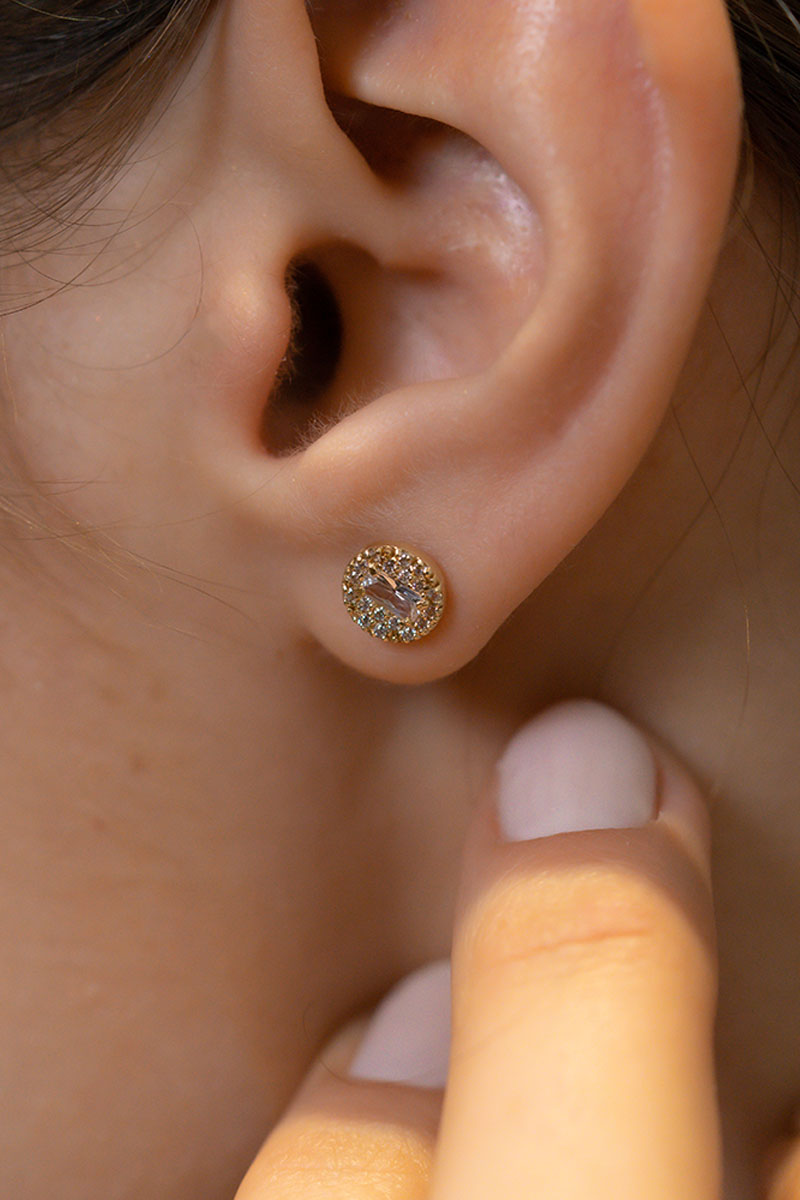 14 Ayar Sarı Altın Taşlı Yuvarlak Tasarım Küpe