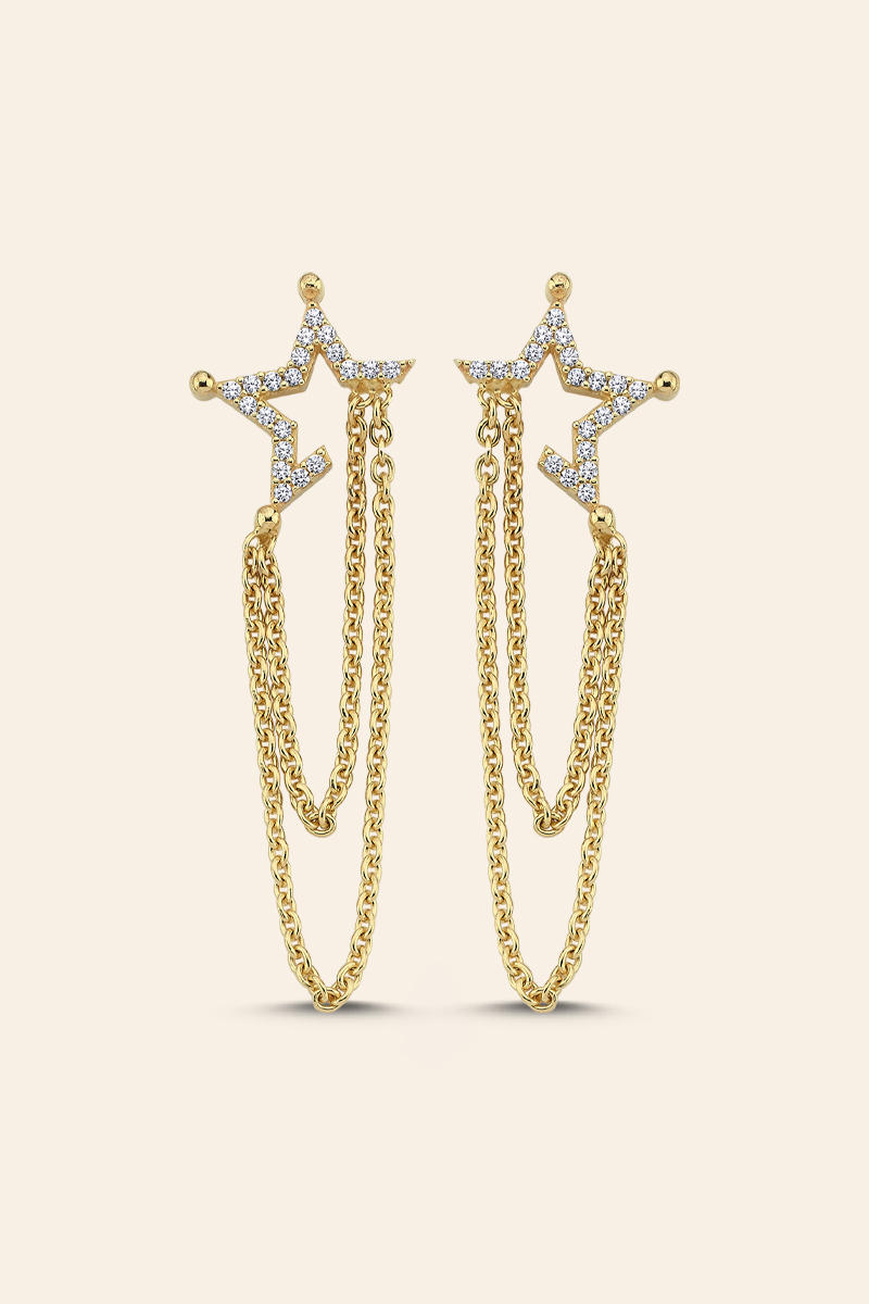 14 Ayar Sarı Altın Taşlı Zincir Küpe