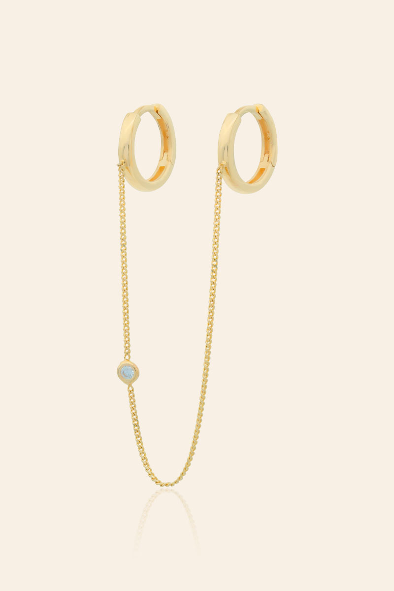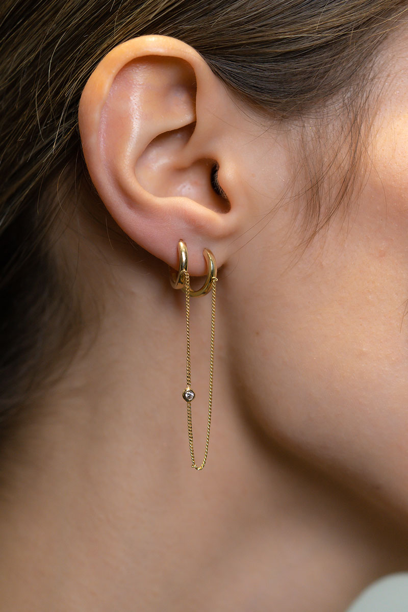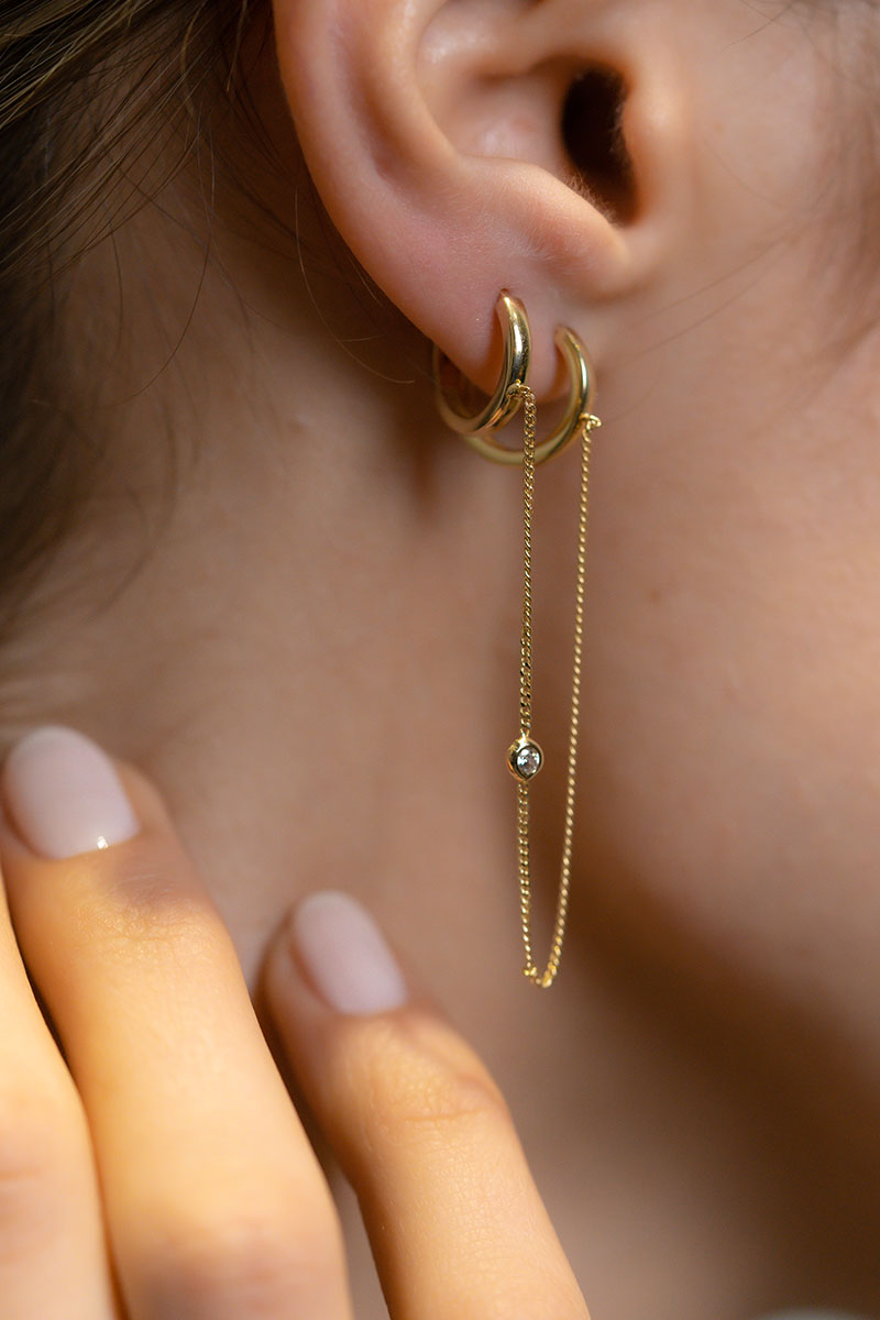 14 Ayar Sarı Altın Tek Zincirli Halka Tek Küpe