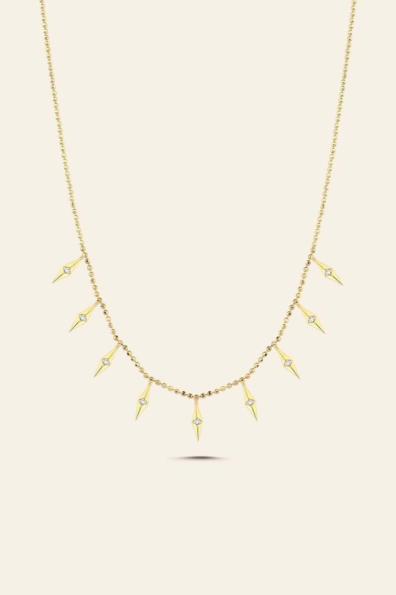 14 Ayar Sarı Altın Uç Formlu Taşlı Kolye ile Modern Zarafeti Yakalayın