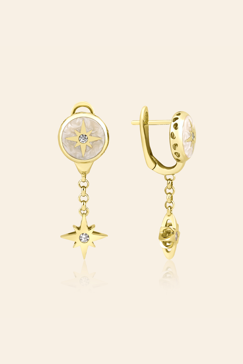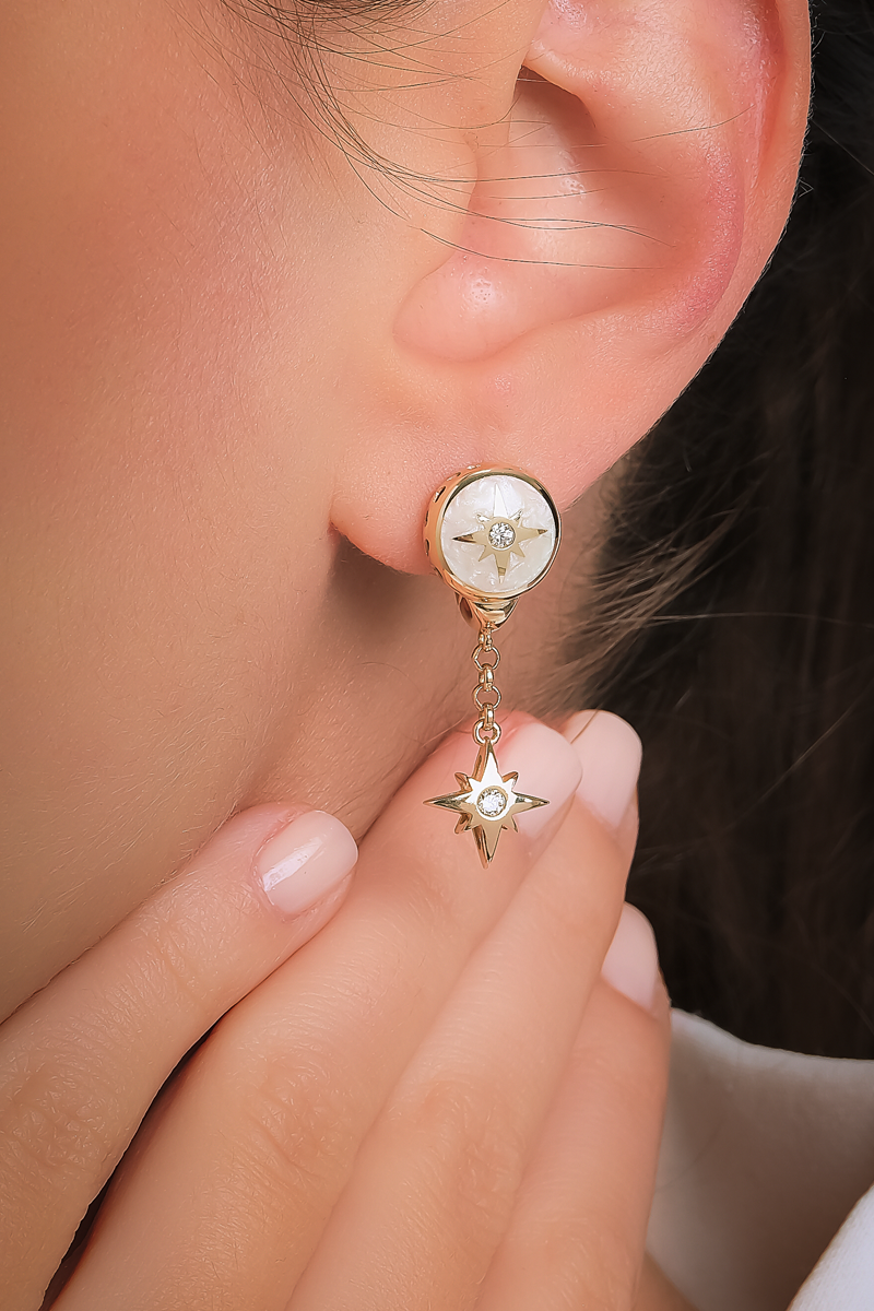 Yıldız motifinin anlamını hareketli bir tasarımla yorumlayan bu küpe, stiline zarafet ve ifade gücü katmak isteyenler için ideal bir seçimdir.