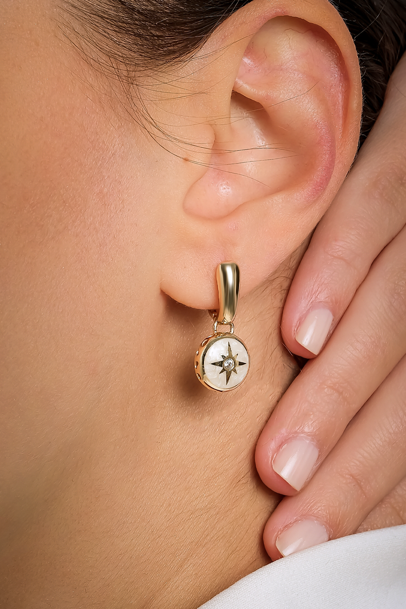 Yıldız motifinin zamansız anlamını sade bir tasarım diliyle sunan bu küpe, stiline zarif ve güçlü bir ifade katmak isteyenler için ideal bir seçimdir.