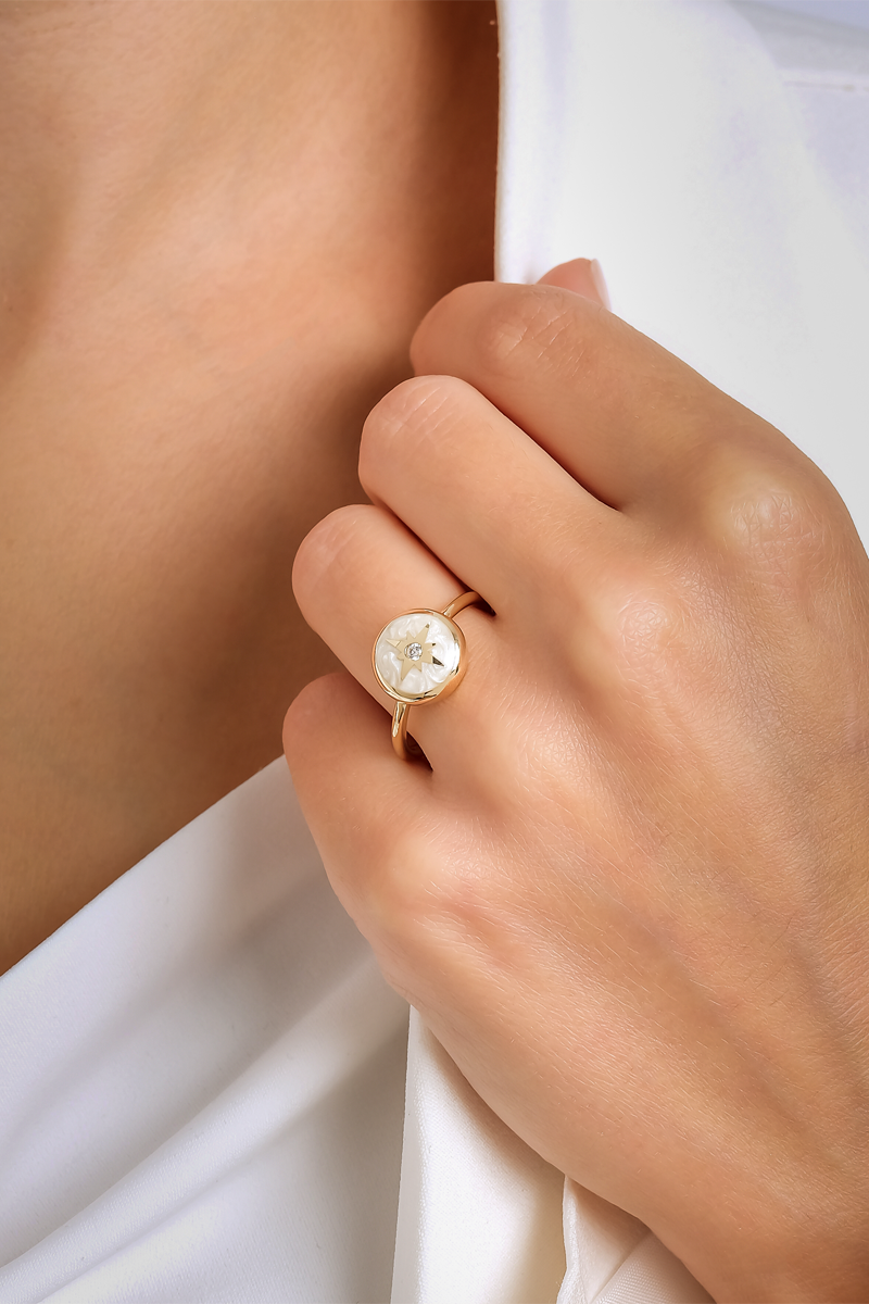 14 Ayar Sarı Altın Sedef Mineli Olivia Koleksiyon Yüzük