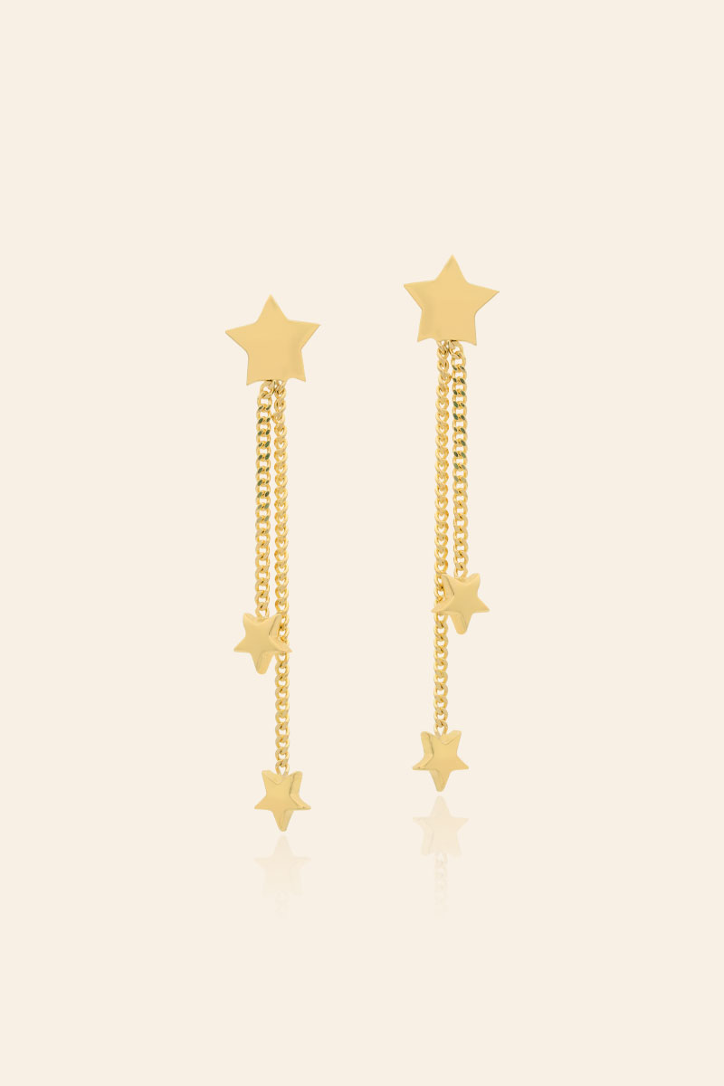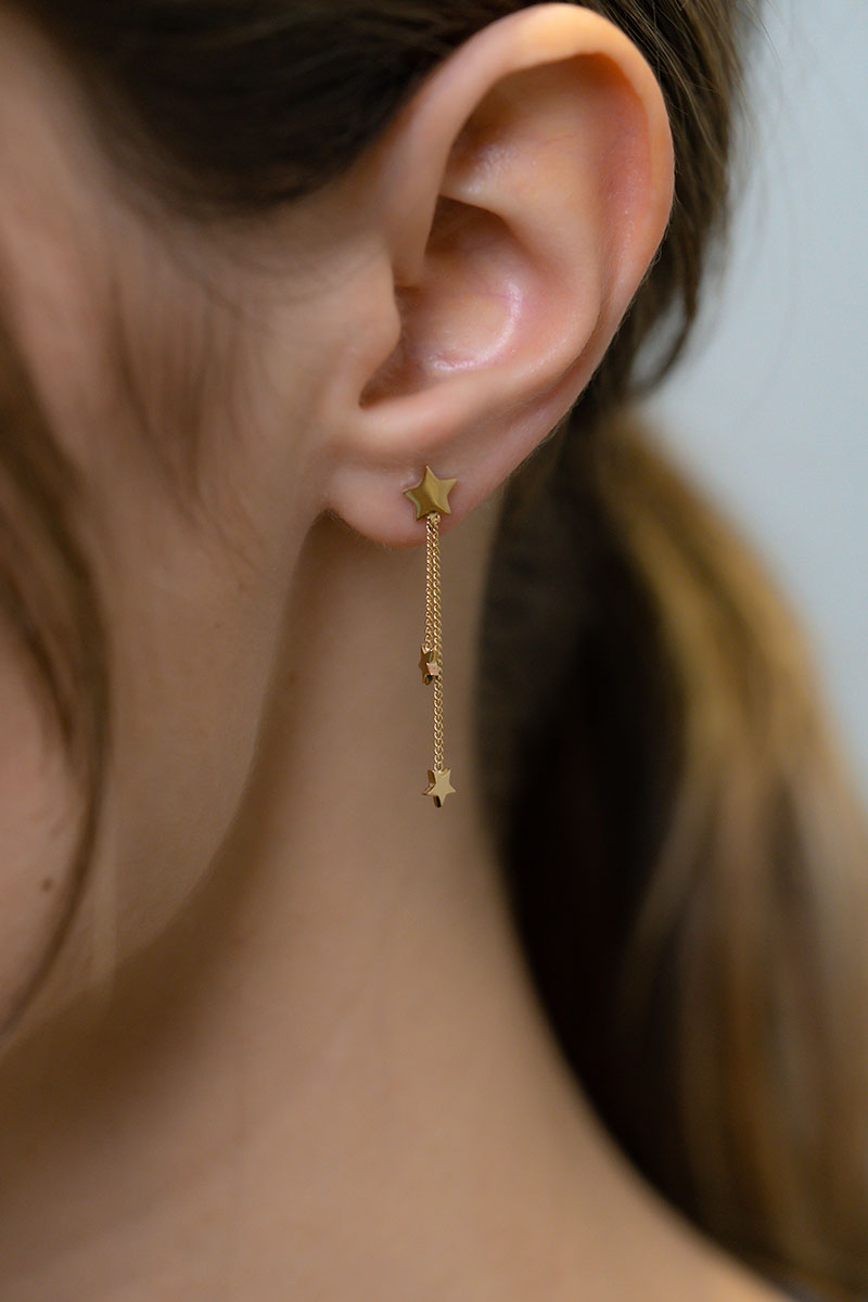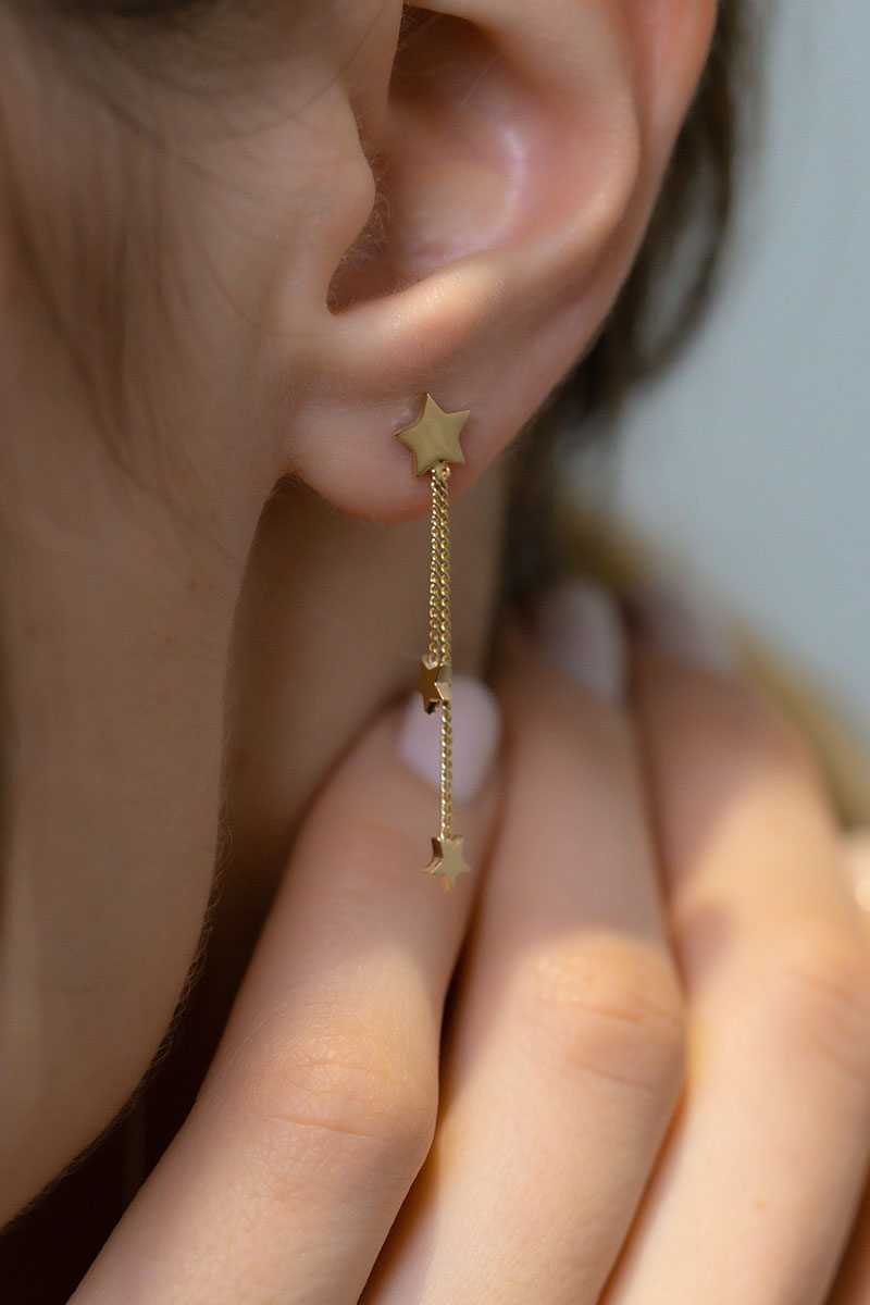 14 Ayar Sarı Altın Yıldızlı Sallantılı Küpe