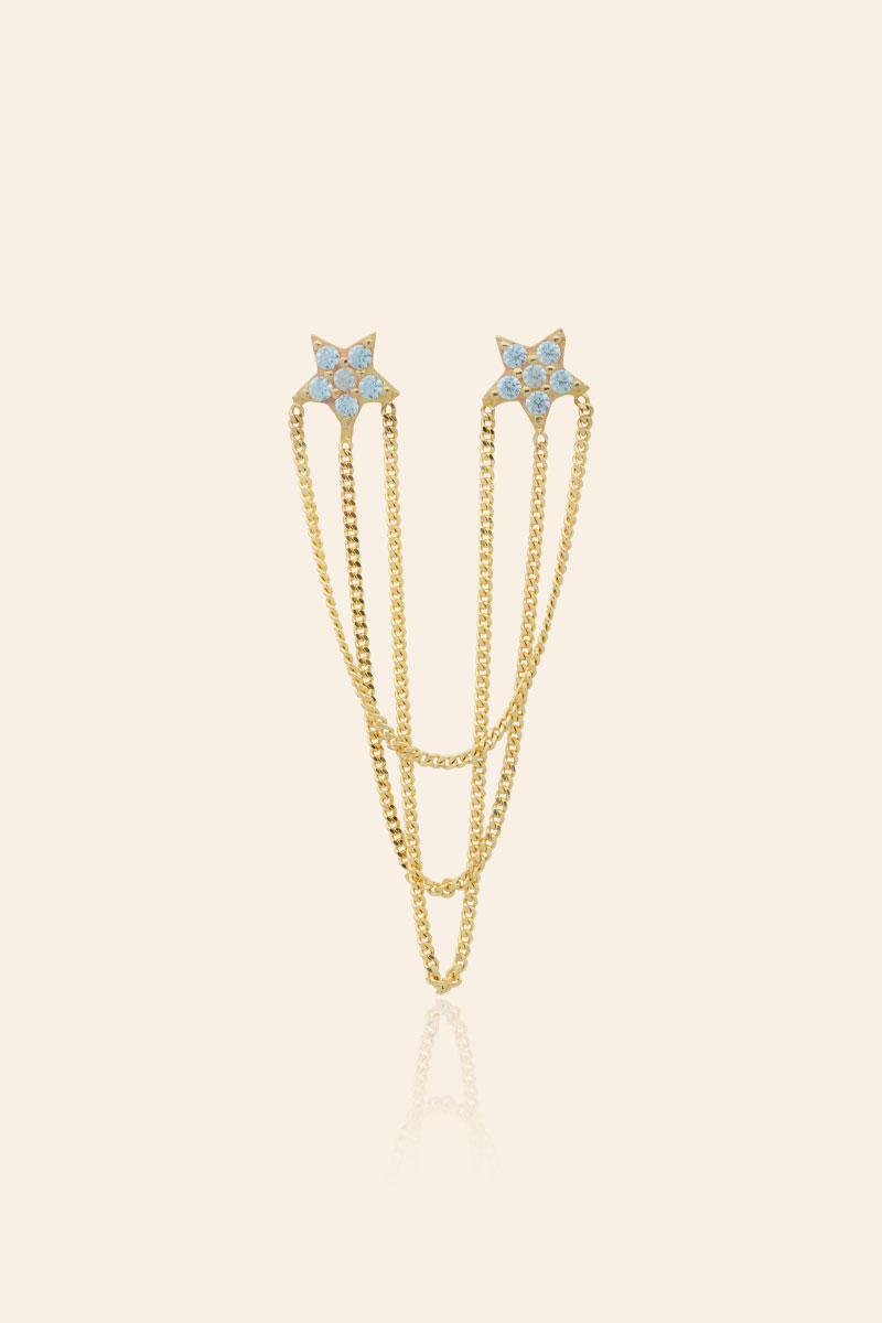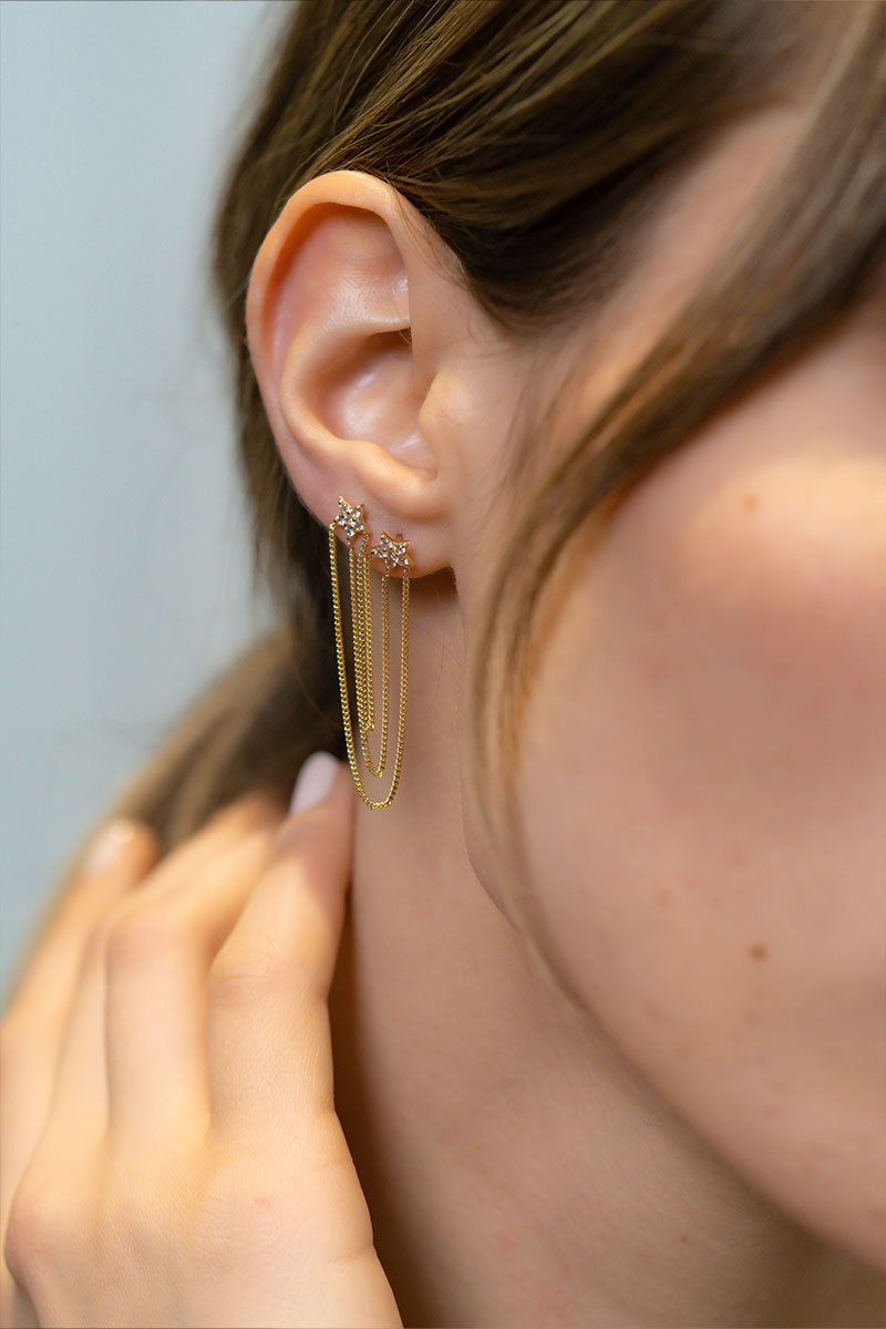 14 Ayar Sarı Altın Yıldızlı Zincir Tasarım Tek Küpe