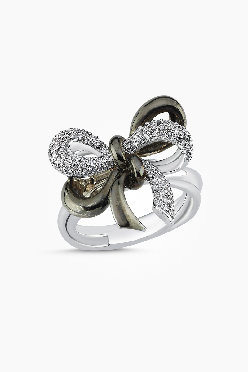 18 Ayar Beyaz Altın Kurdele Tasarım Pırlanta Yüzük