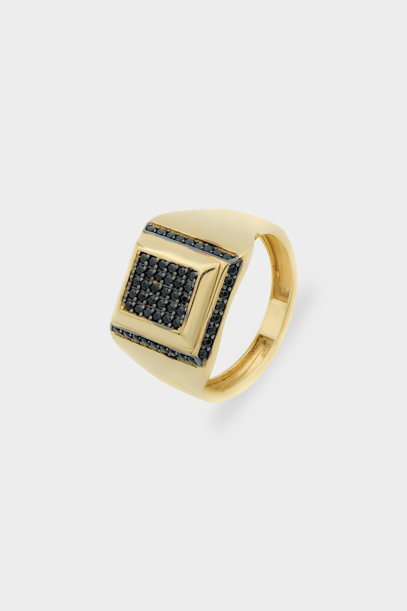 14 Ayar Sarı Altın Taşlı Geometrik Model Erkek Yüzük