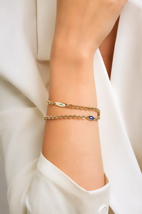 14 Ayar Sarı Altın Göz Detaylı Zincir Bileklik
