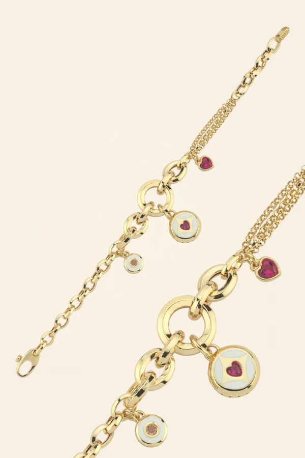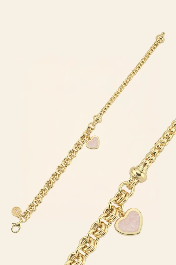 14 Ayar Sarı Altın Kalp Detaylı Halkalı Bileklik